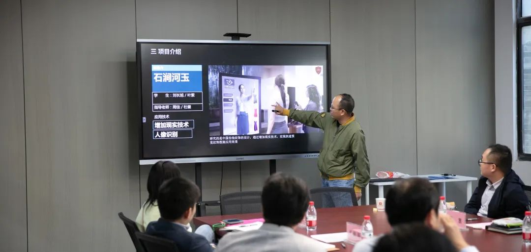 信息工程学院院长汪毅及院长助理李鲁英,yl6809永利集团视觉传达系交互设计教研室主任廖国良分别就“艺科融合”联合毕业设计项目工作进行讲解。