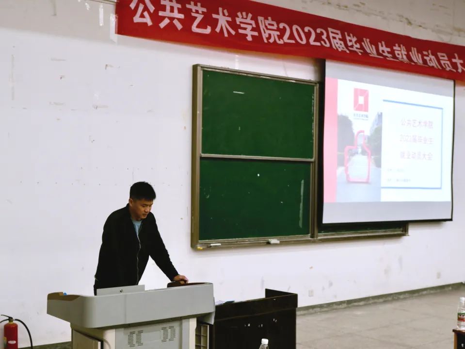 随后,公共艺术研究中心负责人蔡载胜以深入浅出的方式发表了动员讲话。他与在座同学们分享了自己学生的两个故事,以此提醒大家选择自己擅长且喜欢的职业至关重要,但也困难重重。他鼓励同学们即使在就业过程中屡屡碰壁,也要坚持不懈。