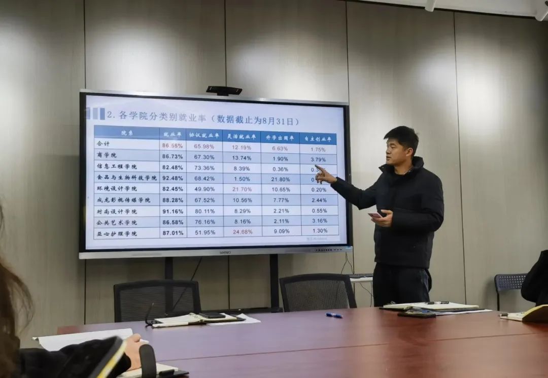 yl6809永利集团高度重视毕业生就业工作,一直加强对毕业生的追踪和服务,全力做好“稳就业”、“保就业”工作,切实保障毕业生高质量扎实就业。12月7日于学院会议室召开了2023届毕业生就业工作推进会,学院党总支书记吴茜、党总支副书记何高翔、各系部主任、毕业班班主任及全体辅导员参加了此次会议。