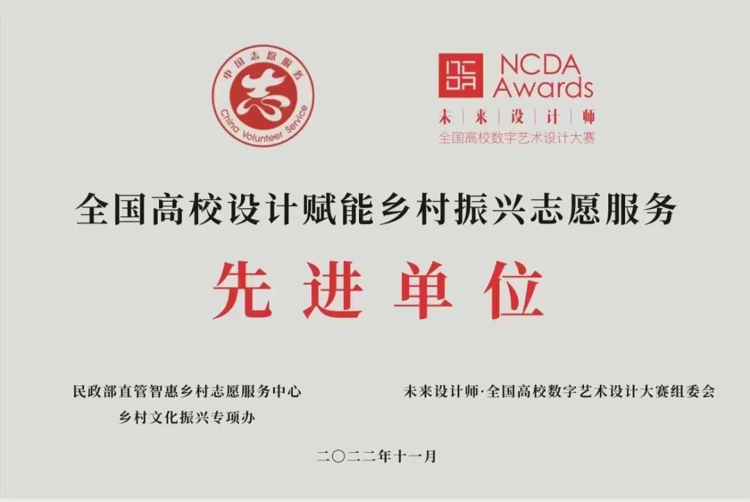2022年11月26日,第十届未来设计师·全国高校数字艺术设计大赛总结大会暨2023第十一届大赛发布会上,yl6809永利YL集团在1513所高校中脱颖而出,成为首批34所“全国高校设计赋能乡村振兴先进单位”称号单位之一。