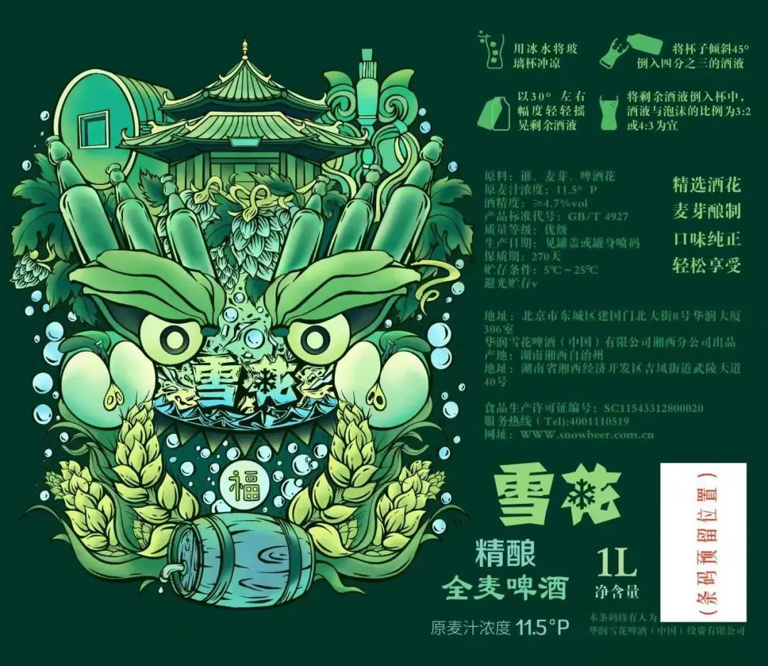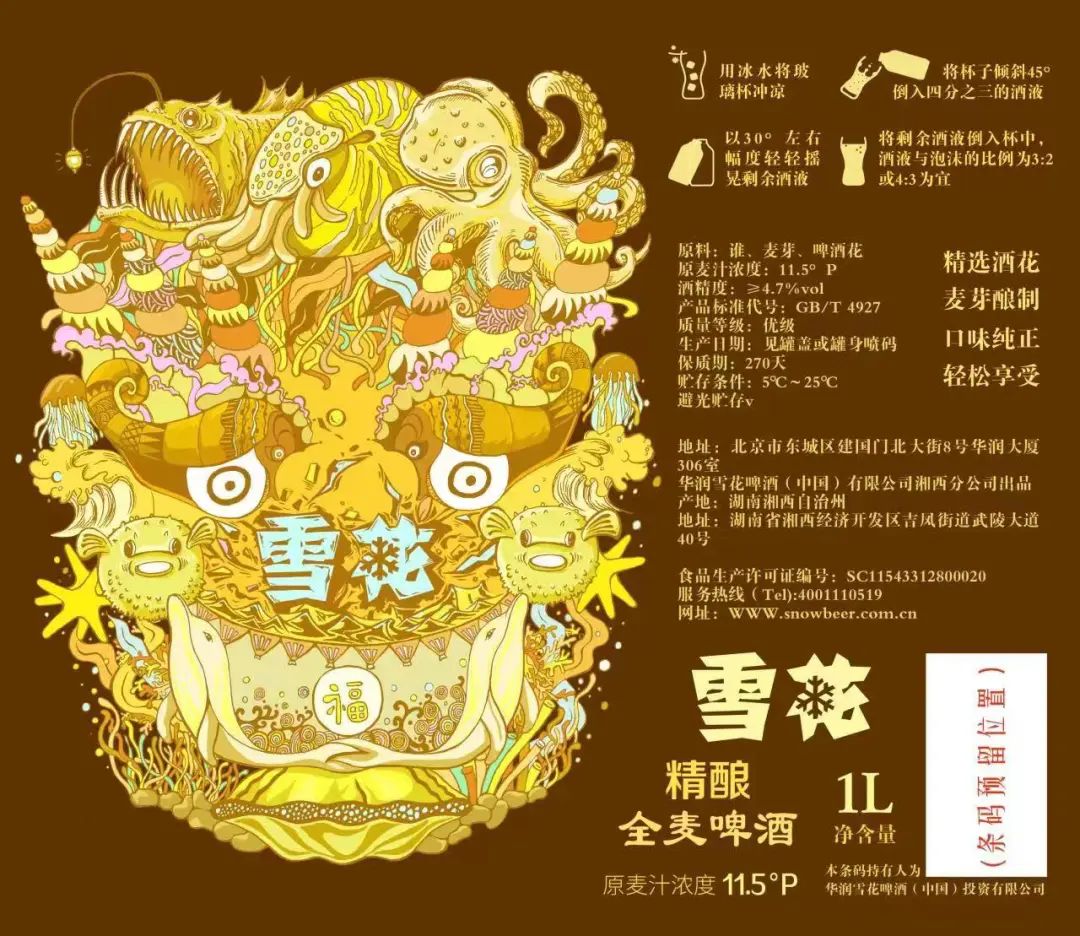 画面中采用共生的图形创意设计方法,使其为主体,雪花啤酒的原料生产地的地标建筑为元素充斥着整个画面,疏密结合有志,运用海陆空的自然元素做出来四幅系列作品,寓意着雪花前景开阔,前路长远。四幅图分别采用了红、黄、蓝和绿四种颜色,春季的生机,夏季的清凉,秋季的丰收,冬季的温暖。四色各代表一个季节。传统文化中融于自然元素使大家重新认识自然元素的魅力,给人一种新的视觉,同时也引起了人们的情感共鸣。对传统文化进行再创造再传承,符合时代发展的潮流。