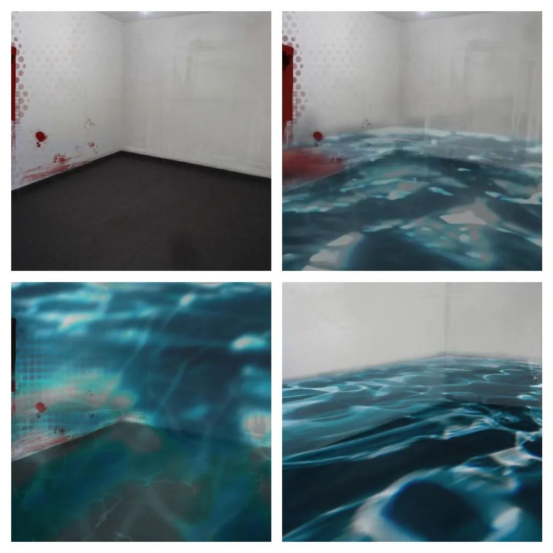 开始时,处在一个封闭小房间中,墙上挂着乌鸦红海报,随着时间流逝,房间内逐渐从地面蔓延出水,直至充满整个房间,但房间此时逐渐变大,水逐渐下降到可以忽略不记,只留下一面即将破损的墙面。封闭的房间代表这人们的内心,乌鸦象征着瘟疫(疫情),水面上升代表内心的压抑和恐惧,但只要内心强大,小小的压抑也就不足为惧了,最后破损的墙面,代表内心的成长,变强变大的象征(内心强大到墙体无法束缚的程度)。
