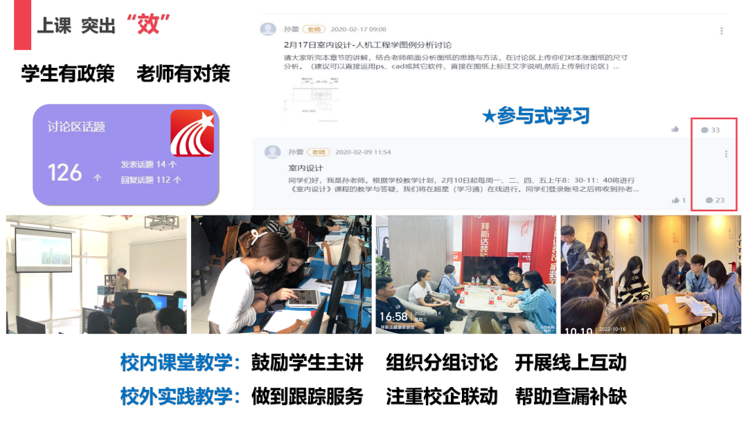 孙蕾老师开始从传统的课堂知识传授者,转变为课堂教学的引导者,特别是近几年面对疫情时代的特殊教学情境,有效做到学生有政策、老师有对策,做到无论什么形式的教学,都能使学生高效参与,做到在校内课堂教学中,鼓励学生主讲、组织分组讨论、开展线上互动;在校外实践教学中,做到跟踪服务、注重校企联动、帮助查漏补缺。