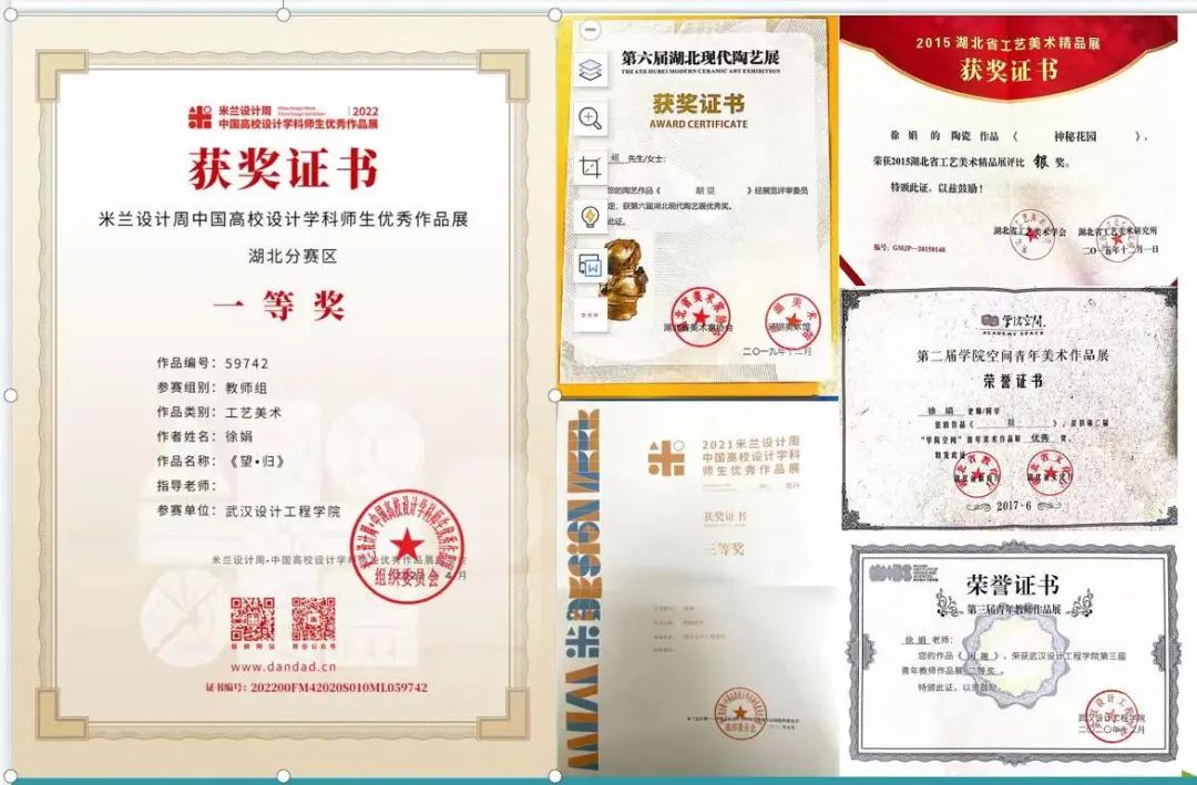 (1)获2022米兰设计周中国高校设计展教师组湖北赛区一等奖、全国赛区二等奖