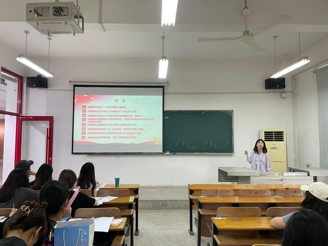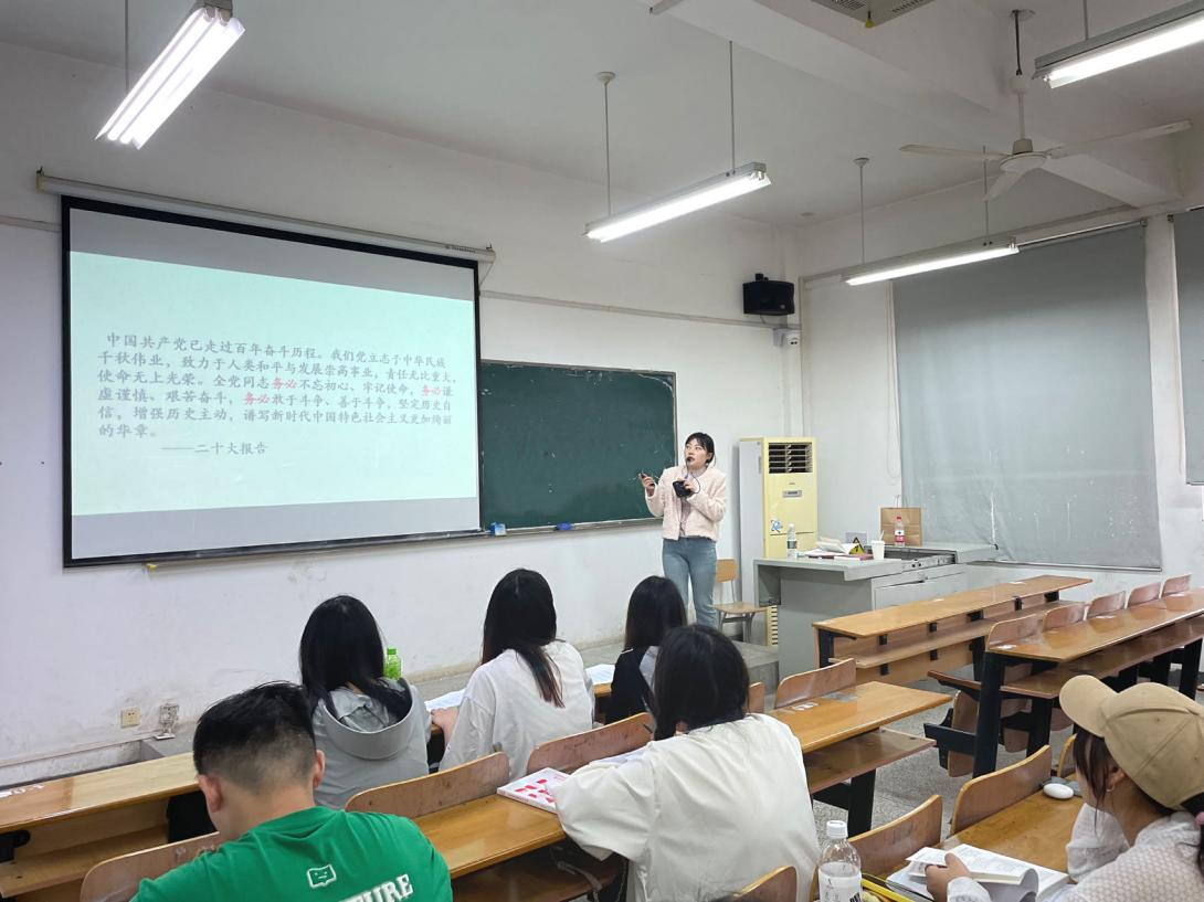 4月20日,马克思主义学院沈青老师从八个方面讲授二十大的主题、主要成果、重大原则和二十大制定的目标任务和重大部署。通过这节党课学习,全体学员紧跟时代的步伐,不断坚定共产主义信念,学习理论,重视理论,厚植精神力量。