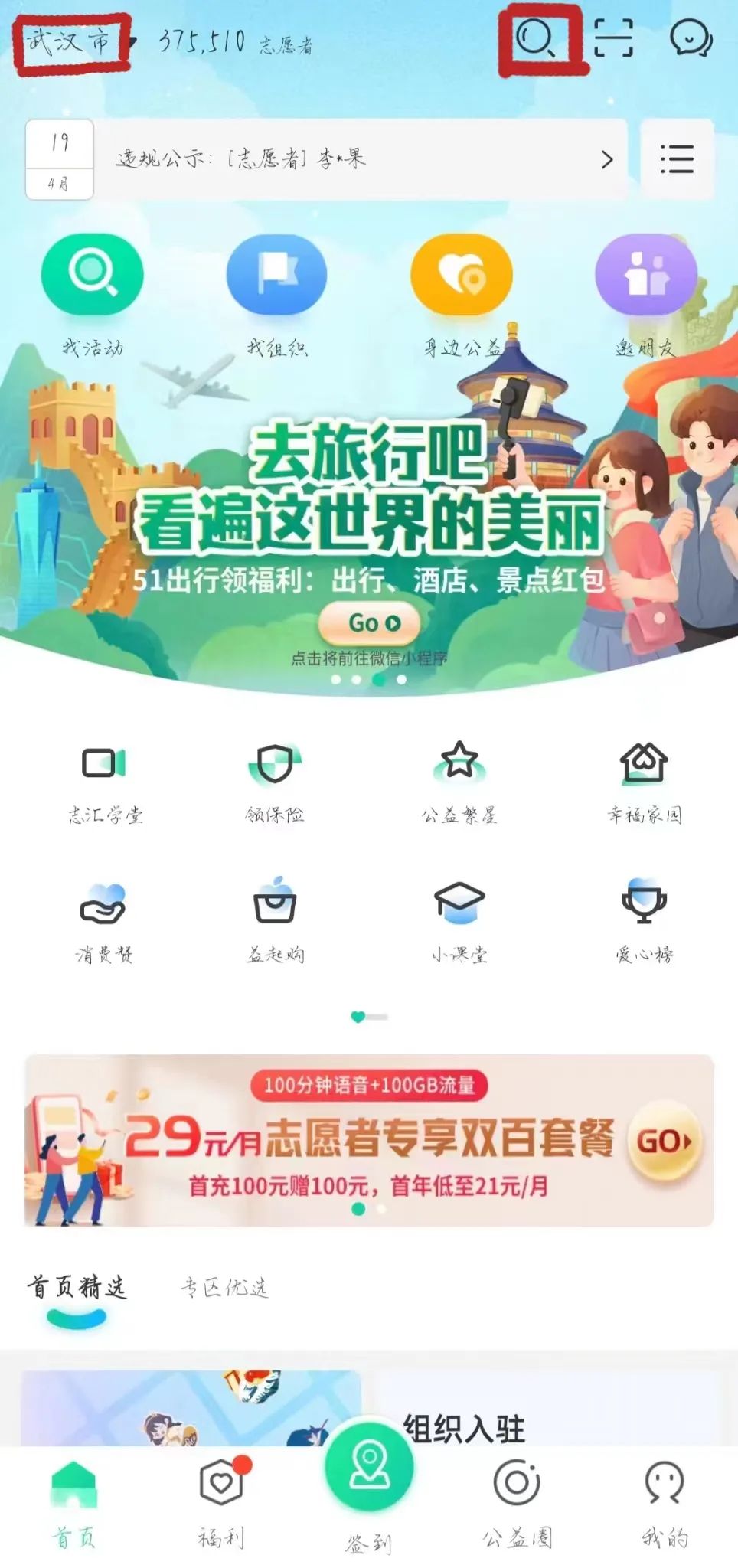 第二步,点击志愿汇主页左上角将定位切换到武汉市点击右边搜索