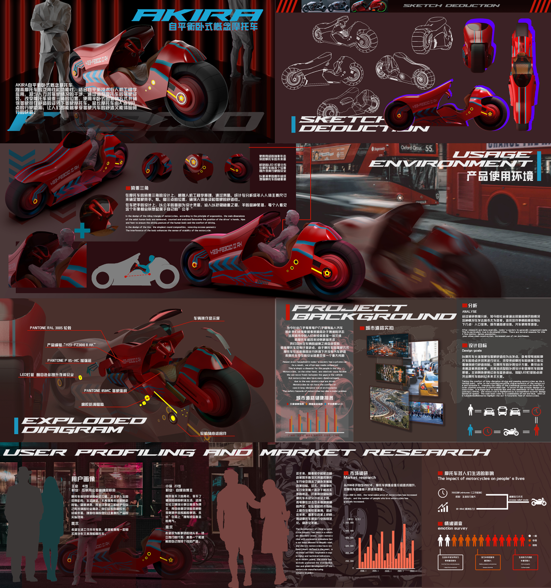 作品名称:AKIRA自平衡卧式概念摩托车设计