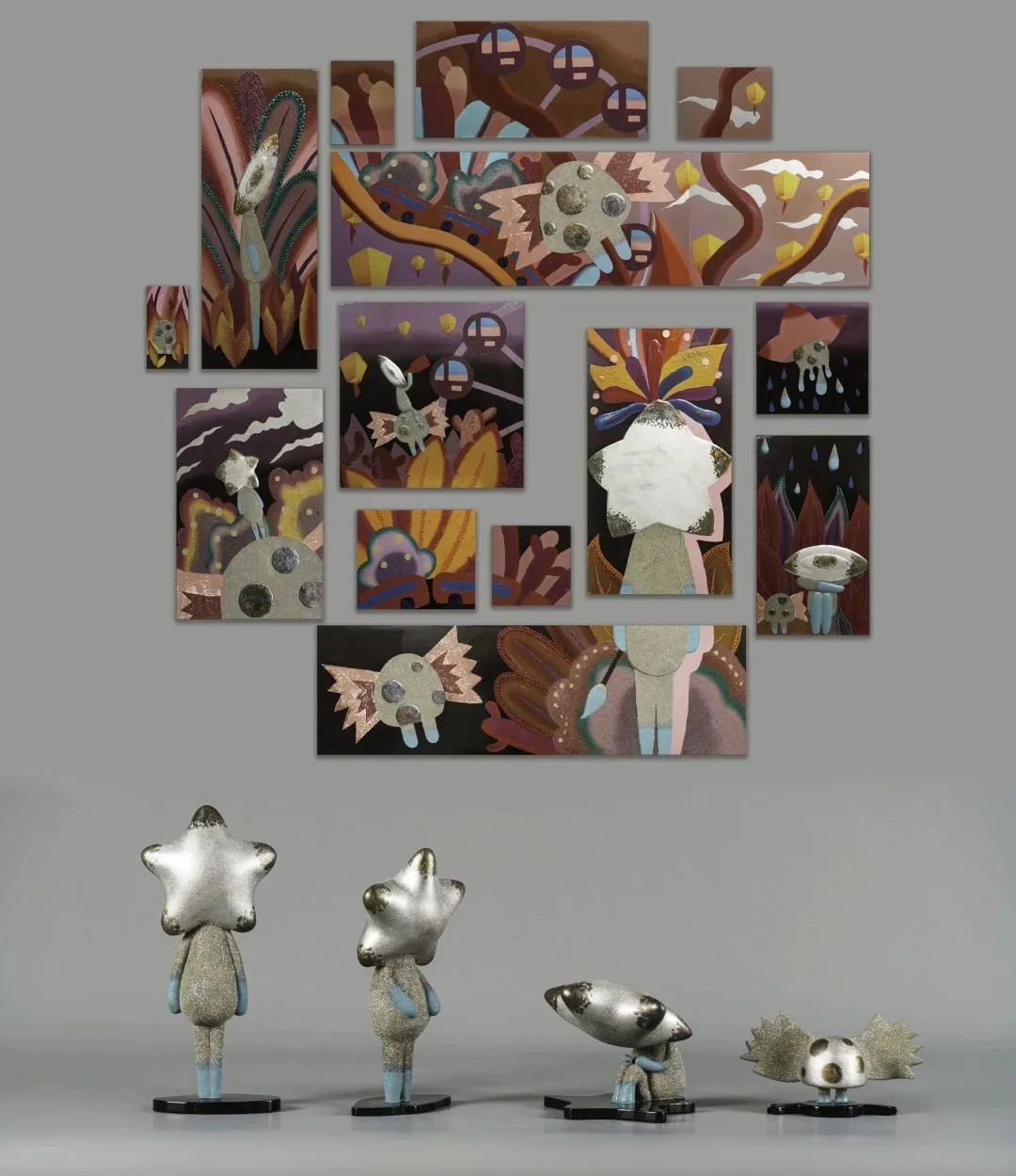 作品灵感来源是于“孤独症”,内容以主体人物—星仔的历险为线索,运用传统大漆材料和工艺技法,将他的历险经历展现出来。将传统漆艺与新型材料相结合,采用平面及立体的方式呈现,形成对比的视觉效果。希望通过《星语》这一作品,呼吁大家关注儿童心理健康。