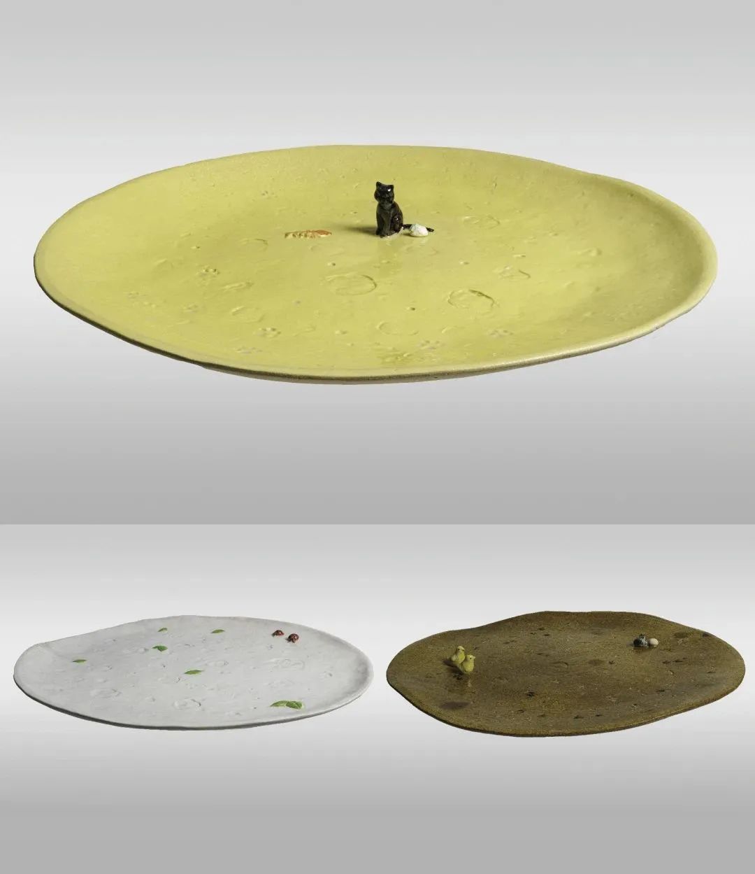 随着当今社会城市化的快速发展,对经济利益的过度追求,生态环境破坏愈发严重,该作品以现代陶瓷工艺的制作手法与自然生态环境里的一些形象相结合,以月球的三种不同形态为盘子,动植物为点缀增加空间层次感,从而做到呼吁人们注重环境保护的目的。