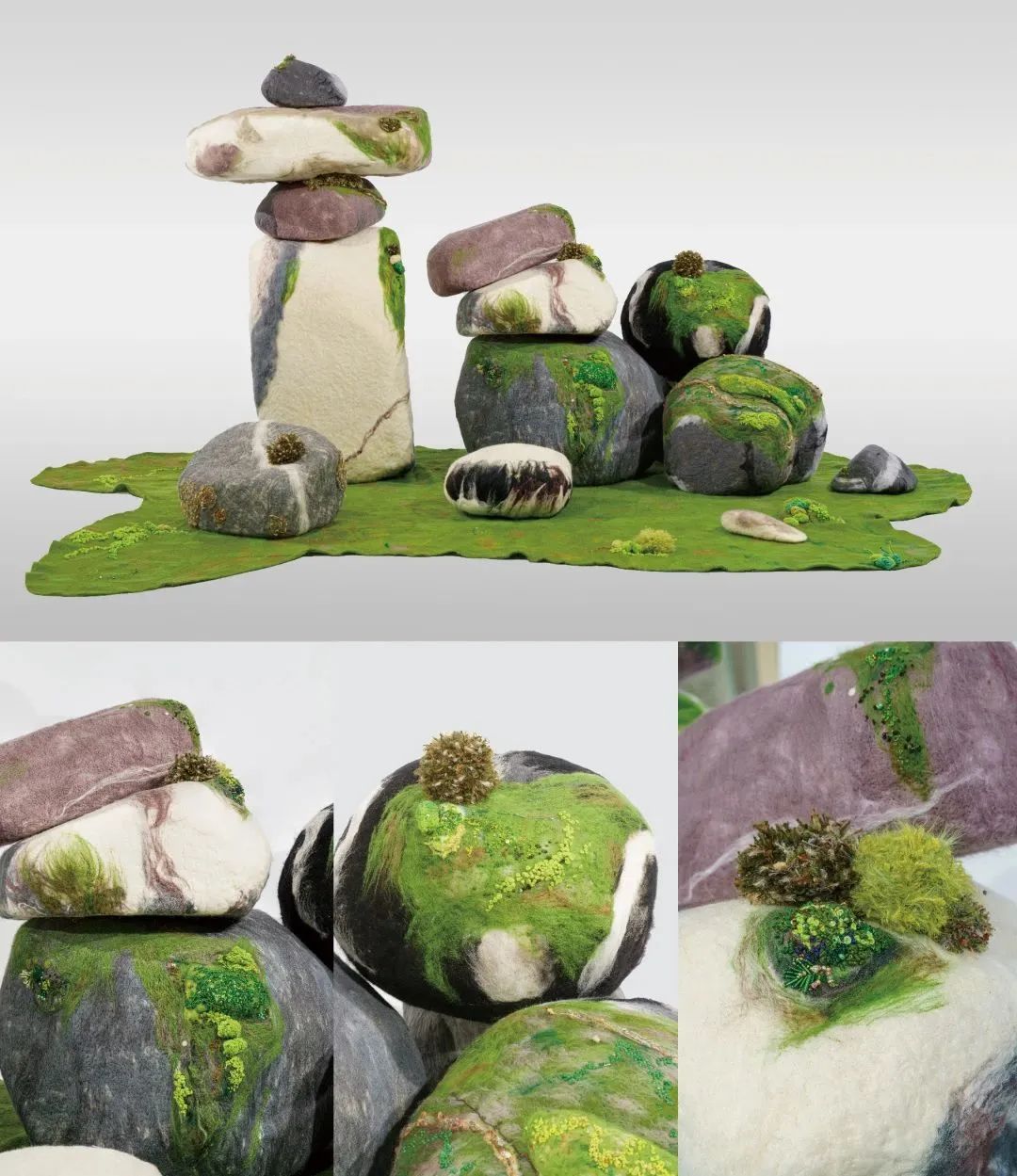 作品材质:刺绣线,毛线,羊毛站,苯板等