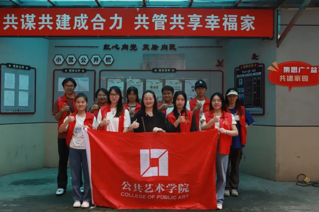 7月1日早上8:00团队在学校举行出征仪式。视频剪辑教学团队由学院融媒体教研室主任郑雨雪、学院辅导员万艳君、来自广告学专业、公共艺术专业、视觉传达设计专业、工艺美术专业、产品设计专业的学生组成。出征仪式结束后,志愿者们向民意街道出发。