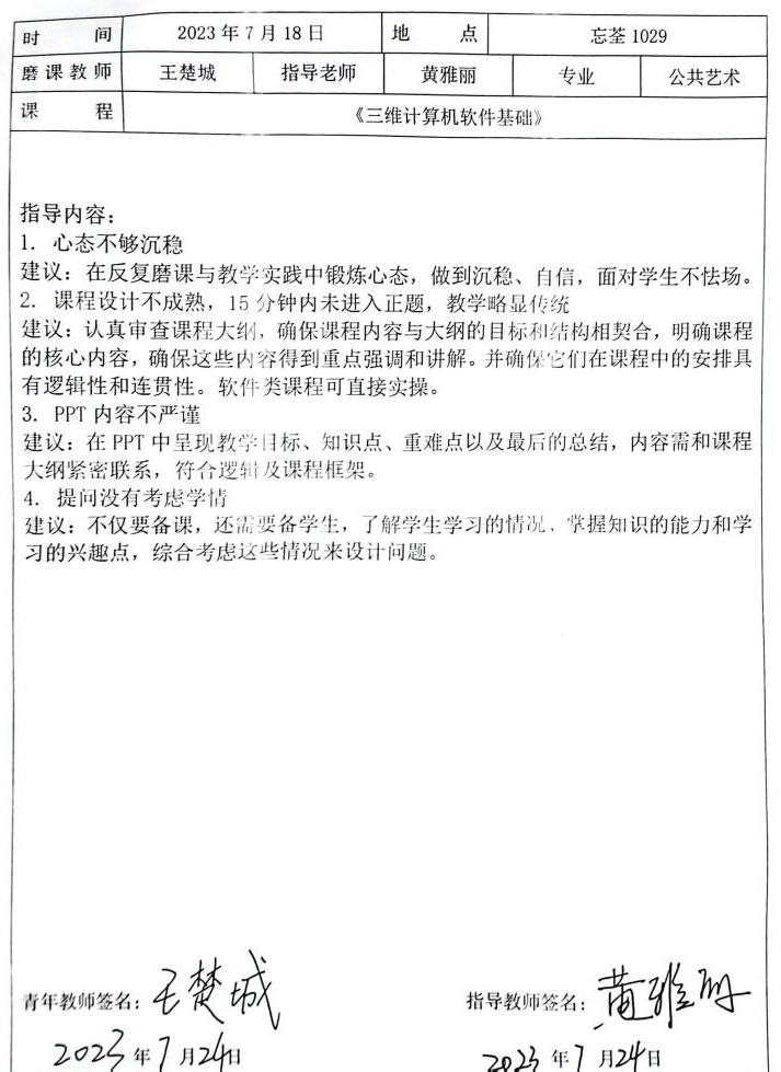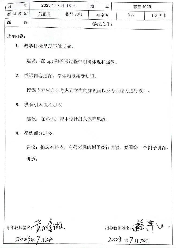 针对讲课、教学PPT各小组专家建议青年教师,可以针对前测、后测进行更多教学设计,PPT课件可在总结环节更加精炼与条理清晰;也建议青年教师在教学过程中坚持以学生为中心,在课堂中需要时刻关注学生的接受程度和专注程度,针对不同的学生采用不同的教学方式和互动方式,尤其要注意课程思政的融入。