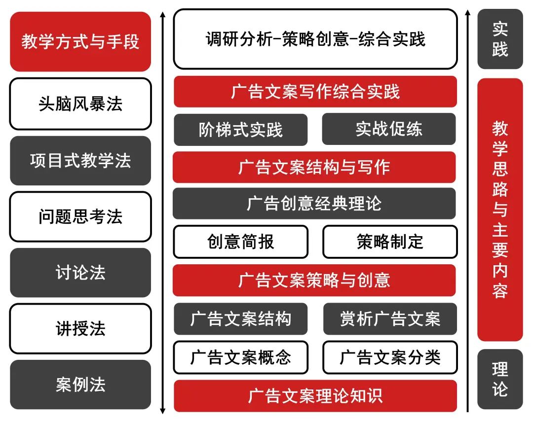 三全育人背景下,《广告文案写作》课程将教学目标从知识、能力、素质多角度进行规划调整,力求让学生不仅能够充分掌握写作相关专业知识与能力,还能提高人文与艺术的综合素质,培养解决实际写作问题的创新思维能力,求真务实、开拓进取的学习态度,树立社会主义核心价值观与爱国意识,为学生职业发展夯实基础,满足高素质应用型人才的培养目标要求。