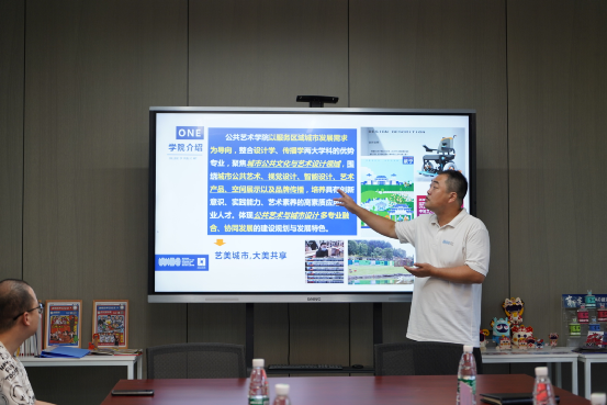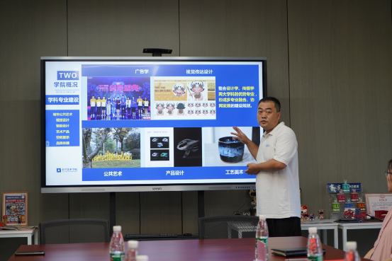 接着,徐畅主任为大家详细介绍了产品设计系下展示设计方向的专业学科分类及发展历程,重点介绍了相关专业方向的负责教师。与此同时,彼此之间就未来合作的方向和针对专业学生的培养计划进行了进一步的讨论。
