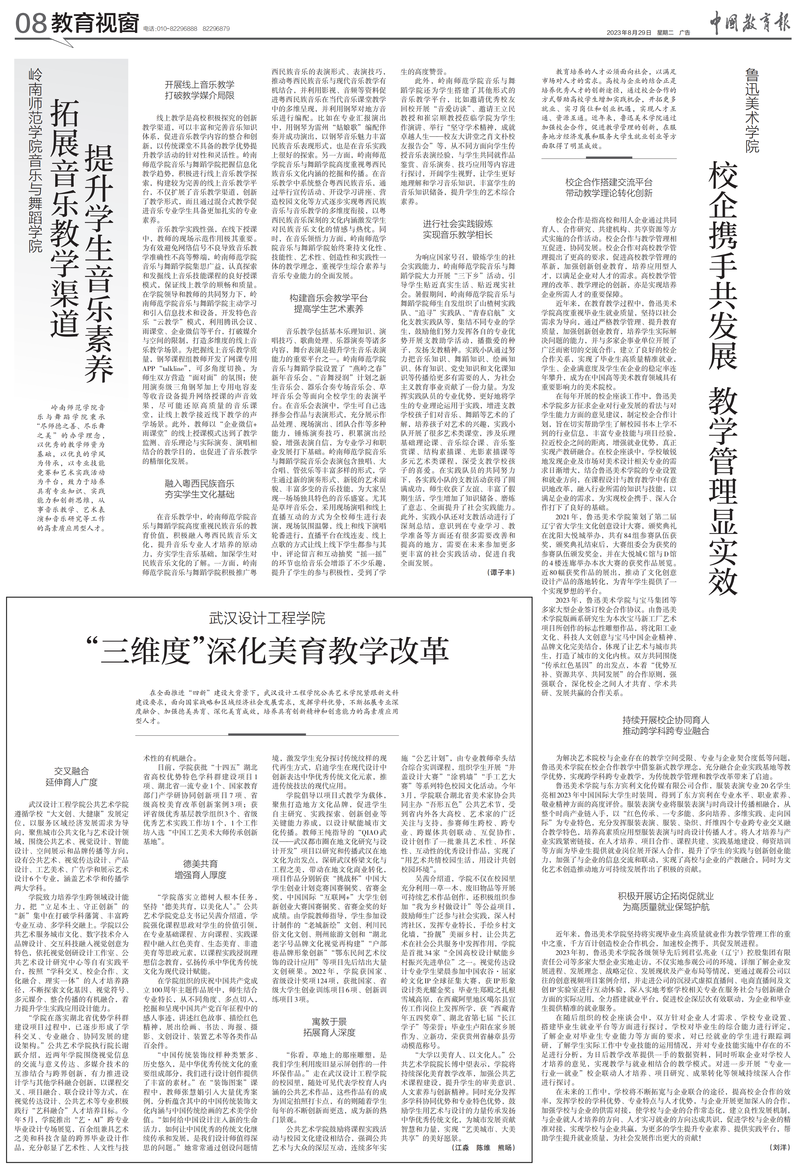 8月29日,《中国教育报》第八版以“yl6809永利YL集团:‘三维度’深化美育教学改革”为题,报道了我校yl6809永利集团面向国家战略和区域经济社会发展需求,不断拓展专业深度融合、加强德美共育、深化美育成效,培养高素质应用型人才见成效。