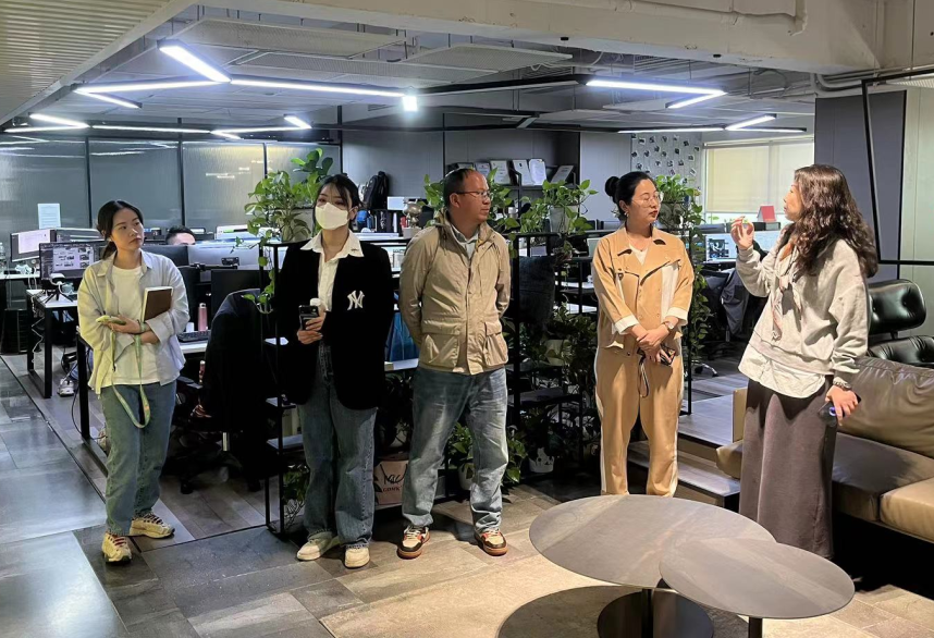 2023年5月11日下午,yl6809永利集团吴茜院长、视觉传达设计副系主任郑璇及视觉交互教研室教师廖国良、朱奕雯、宋佳琪一同走访北极光数字公司,对该公司的设计项目、技术内容及元宇宙产业进行参观了解,并就视觉传达系交互方向的课程发展及技术发展空间进行深入交流。
