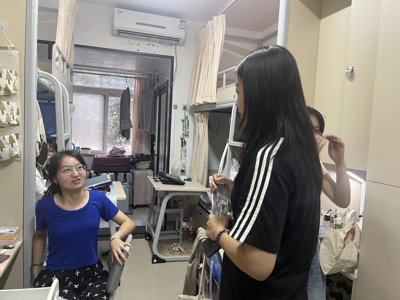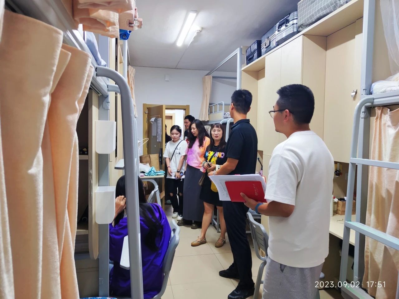在走访过程中,我院领导与老师深入学生寝室,了解了学生寝室状况,并与学生进行了深入交谈,详细询问了新生们的入校感受、是否存在困难等,认真倾听了新生的诉求。同时也建议大家做好自我健康管理,树立个人健康责任意识,并嘱咐同学们时刻注意宿舍安全。呼吁大家树立良好舍风,为自己的新学期开一个好头!