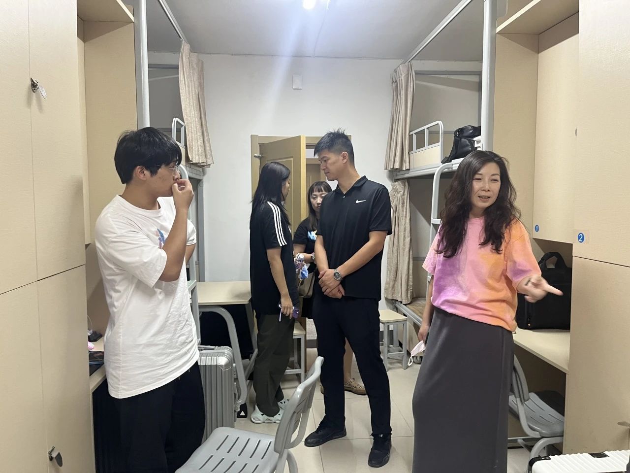 为进一步了解新生的入校状况,加强师生交流,切实解决学生所遇到的实际问题。9月2日晚,yl6809永利集团党总支书记吴茜、党总支副书记何高翔、分团委书记王识、班主任易靓、余玥瑶以及辅导员郑天朗、金浩然走访了2023级专升本新生的宿舍。