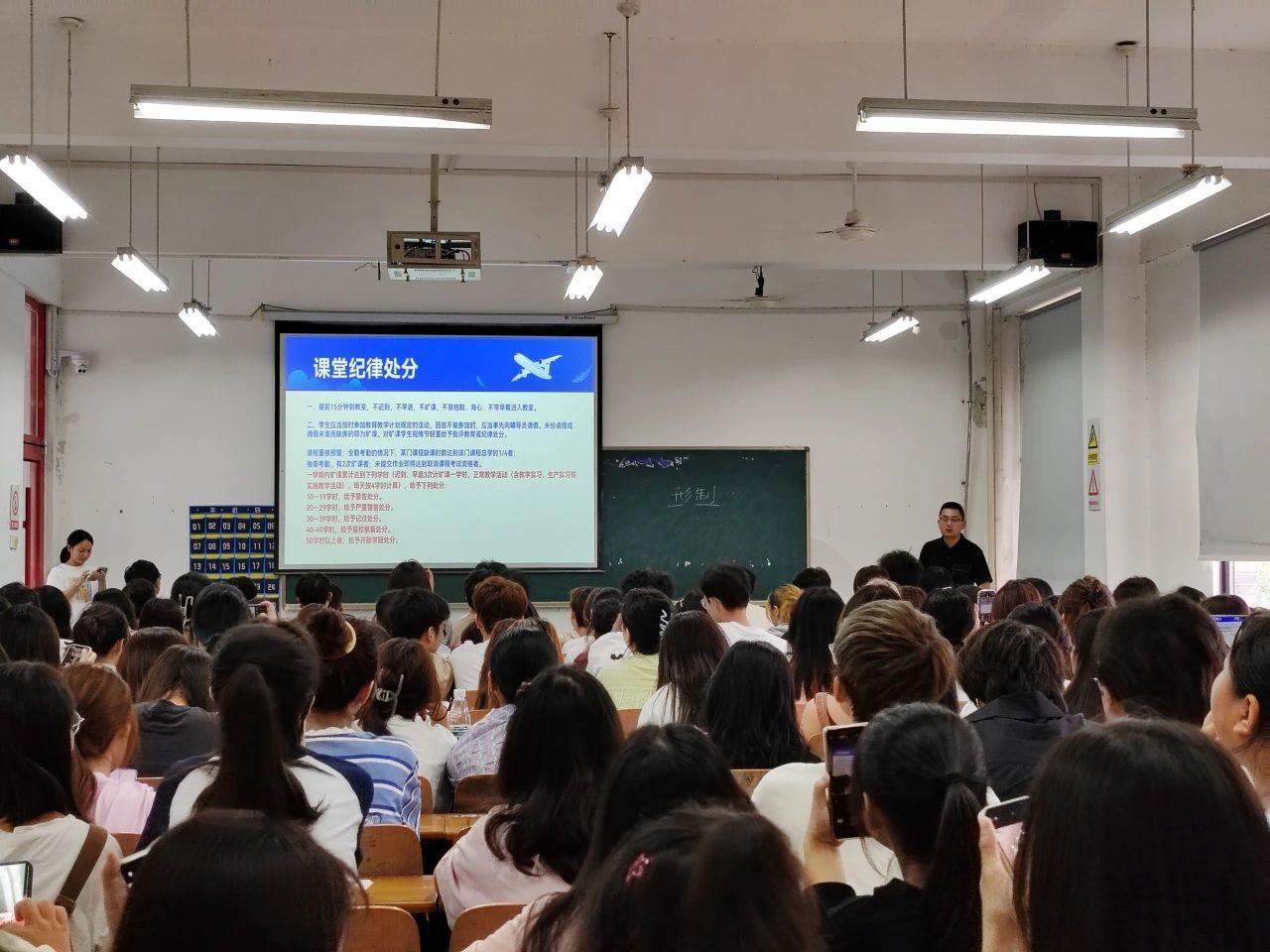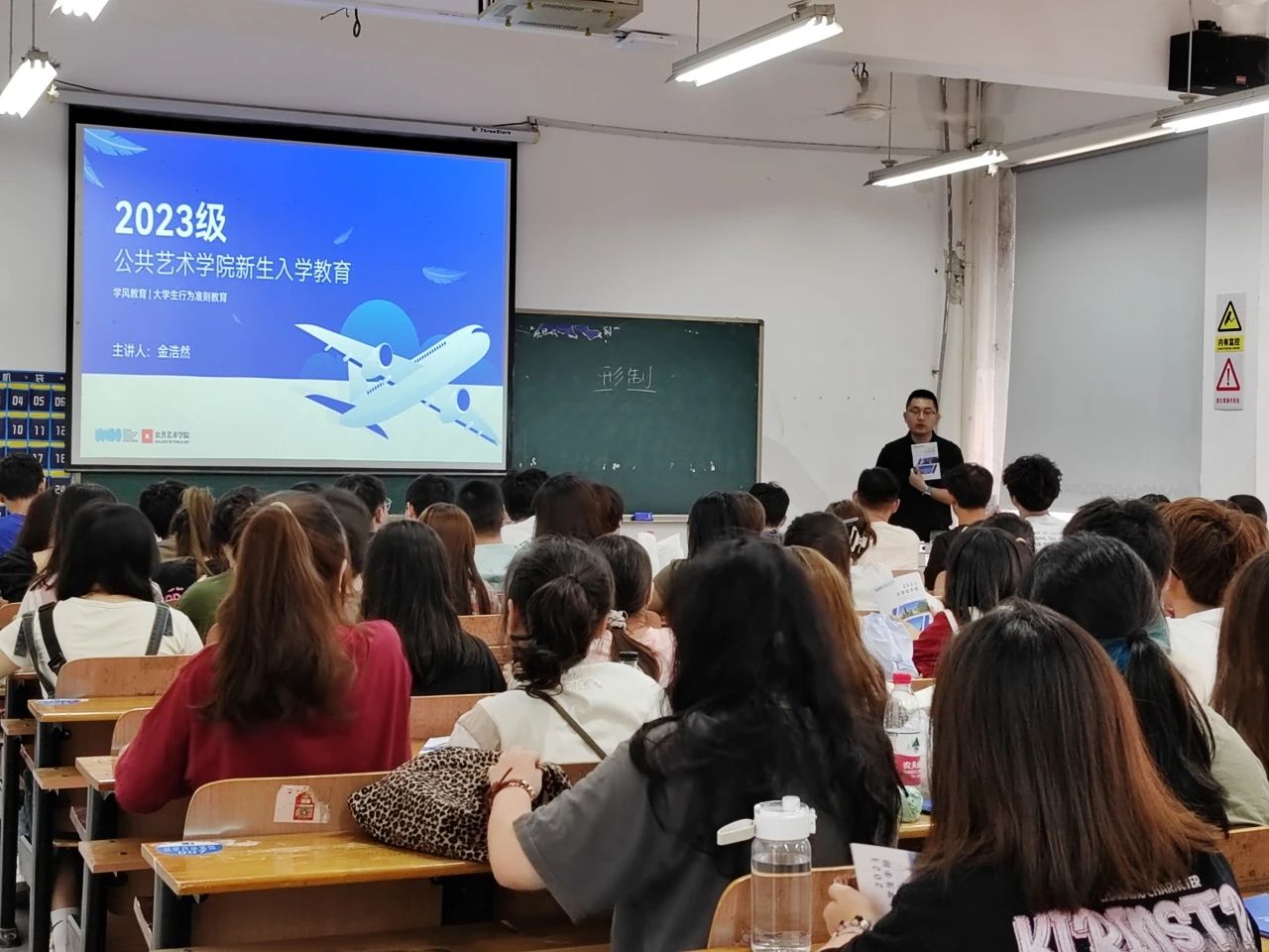 郑天朗老师以校纪校规、大学生行为规范为主题,引导2023级的新同学对校园的规章制度进行学习与理解。“怎样在校园里做一位合规守矩,并自由发展的大学生需要各位同学对校园的规章制度有清晰的理解。学校作为学生步入社会的桥梁,希望同学们能在课堂上充分理解规章制度对校园氛围的重要性,校园规章制度是维护校园秩序、保证学生安全的重要保障。这些规章制度不仅有助于维护校园的秩序,同时也保证了学生学习和生活的正常进行,并有助于培养学生的自律精神和社会责任感”。