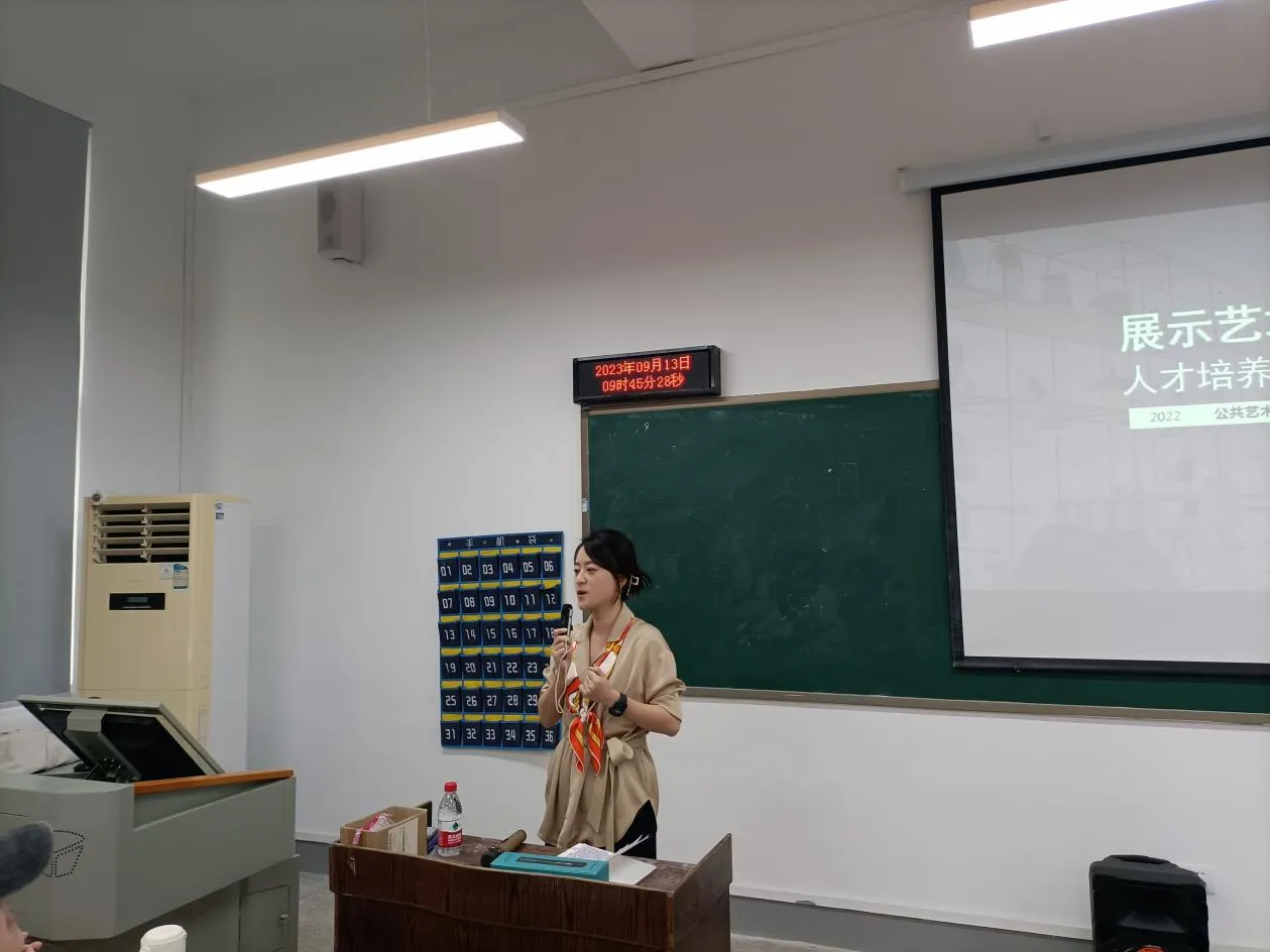 罗薇老师围绕展示艺术设计专业的培养目标、学制与学位以及课程体系等方面进行了详细的介绍,指出展示艺术设计专业最重要的技能板块在于运用“空间”语言的能力,强调了在校学习期间每位同学需要关注的重点内容。并结合自身发展和学习经验,对展示艺术专业就业情况及社会对毕业生的需求作了分析,让新生们对未来的职业规划选择和就业发展方向有了更加清晰的认识。