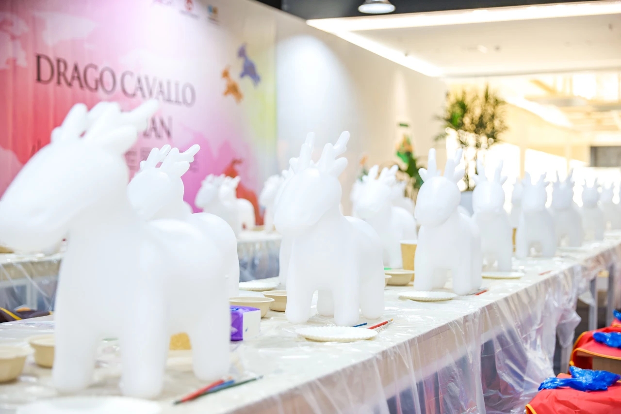 小龙马是由香港艺术家马兴文创作的艺术IP,现场马老师用流利的双语向大家分享了本次活动的初衷和小龙马背后的故事。他表示,“小龙马”的创意灵感源自中华文化中“龙马”即仁马,同时龙马也是古代八大神兽之一,代表华夏民族的主体精神和道德,象征着希望与光明。马老师设计的小龙马“无眼”、“无嘴”,寓意其不带任何偏见,因此活动邀请不同的人来,通过给小龙马上色,传递爱与温暖。