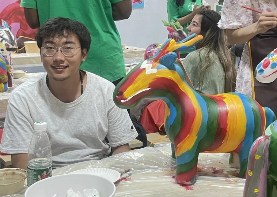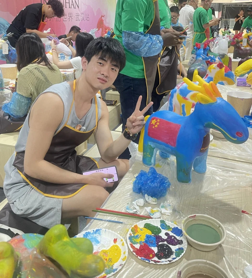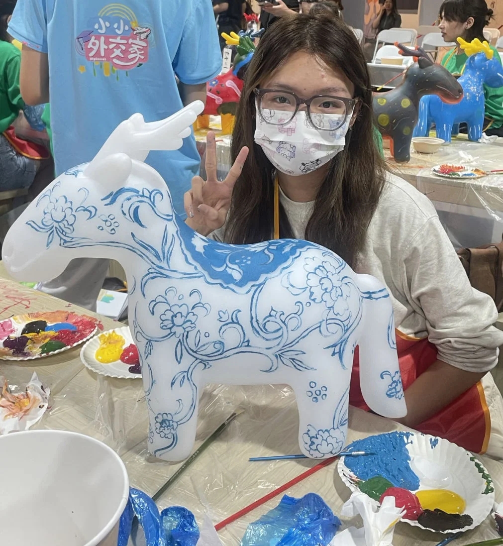 何舟(工艺美术2102):很高兴能够参加这次小龙马环游世界的绘画活动,和小朋友还有来自不同国家的外国友人一起交流绘画小龙马精神!