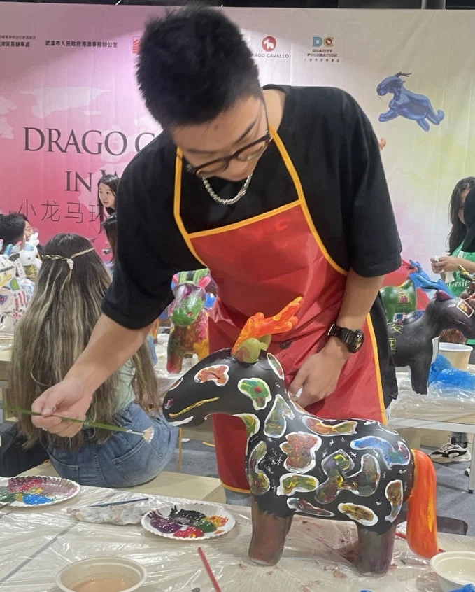 此次活动以共创工作坊的形式开展,市港澳办邀请了200位来自不同背景的学生参与一起完成小龙马的创作。其中有来自yl6809永利YL集团学生、湖北大学的外籍留学生、来自武汉多个小学的“小小外交家”们,在现场共同绘制了色彩缤纷的创意小龙马。让200位创作者进行了一次别开生面的沉浸式艺术创作体验。