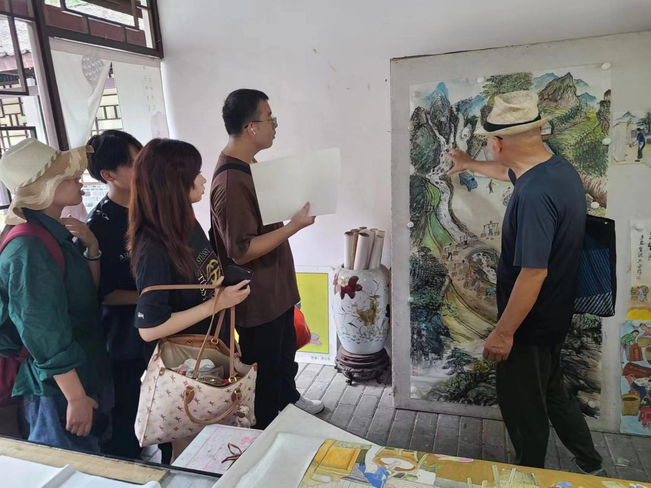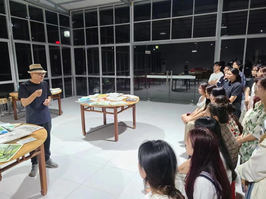回到写生基地,院长谢跃教授、王识老师结合当地文化特色、革命老区遗址进行教学,同时就学生每天的美术创作进行点评并开展点对点辅导教学,在交流中,同学们受益匪浅。