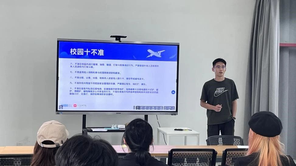 张楠老师和夏莉霞老师通过PPT的形式向同学们讲解了一些校园安全知识。她们提到了交通安全、食品安全、网络安全等方面的内容,并结合实际案例进行了说明。同时,她们还提醒同学们要注意个人财物的安全,避免发生盗窃等事件。学生们积极参与讨论,纷纷发表了自己的看法和建议。通过这样的讨论,同学们对校园安全有了更深入的了解,也增强了自我保护的意识。最后,老师们介绍了即将进行的校园安全实践活动的安排,并表示学校将组织一些实践活动,让同学们亲身体验和学习如何应对突发事件,她们鼓励同学们积极参与,提高自己的应急能力。