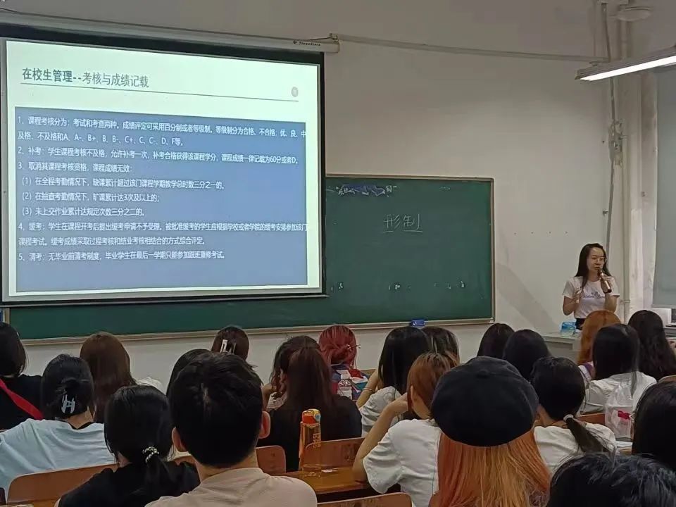 田原老师围绕课程考核与重修、成绩管理、学籍预警、毕业资格与学位授予条件几个方面向同学们解读了在校大学生学籍管理制度。田老师表示,学籍管理跟每位同学的大学生活紧密结合、息息相关,老师勉励大家努力学习,争取每位同学都能顺利毕业。