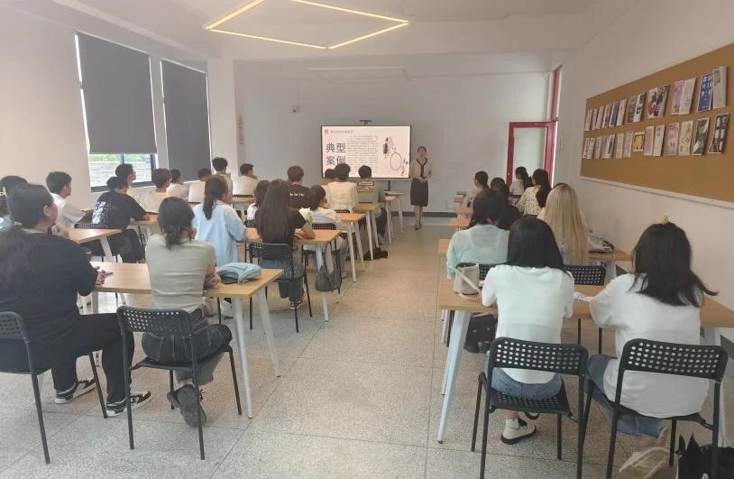 金浩然老师围绕着和本科教学合格评估和学风建设两个主题向各位新同学提出了要求。在合格评估中,全校师生人人都是参与者,人人都是责任人,各位新同学应该以崭新的面貌、积极的态度认真对待。作为新时代的大学生,应该深刻认识新时代赋予我们的历史使命,准确进行自我定位,以饱满的热情投入到各门课程的学习,积极思考,勤学好问。金老师呼吁每一位新生充分利用课后时间,不断完善自己。 郑天朗老师以校纪校规、大学生行为规范为主题,引导2023级的新同学对校园的规章制度进行学习与理解。“怎样在校园里做一位合规守矩,并自由发展的大学生需要各位同学对校园的规章制度有清晰的理解。学校作为学生步入社会的桥梁,希望同学们能在课堂上充分理解规章制度对校园氛围的重要性,校园规章制度是维护校园秩序、保证学生安全的重要保障。这些规章制度不仅有助于维护校园的秩序,同时也保证了学生学习和生活的正常进行,并有助于培养学生的自律精神和社会责任感”。