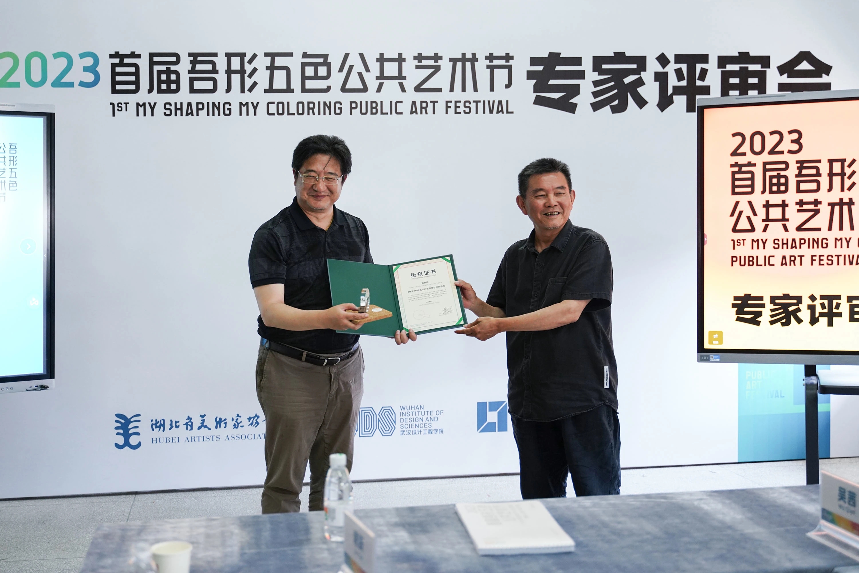 评审会上,程凡、王志新为评审专家们颁发了“吾形五色”公共艺术节评委证书。