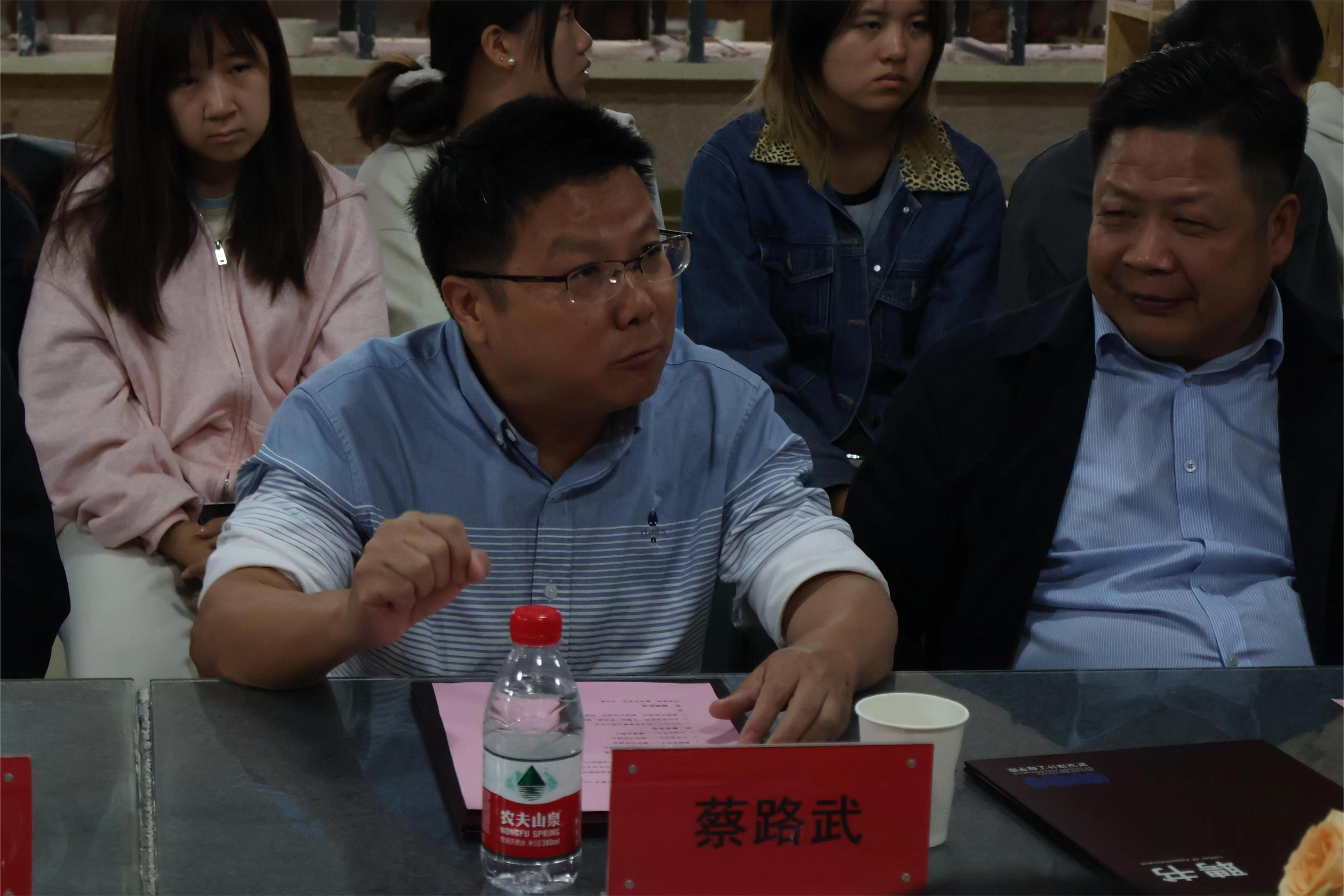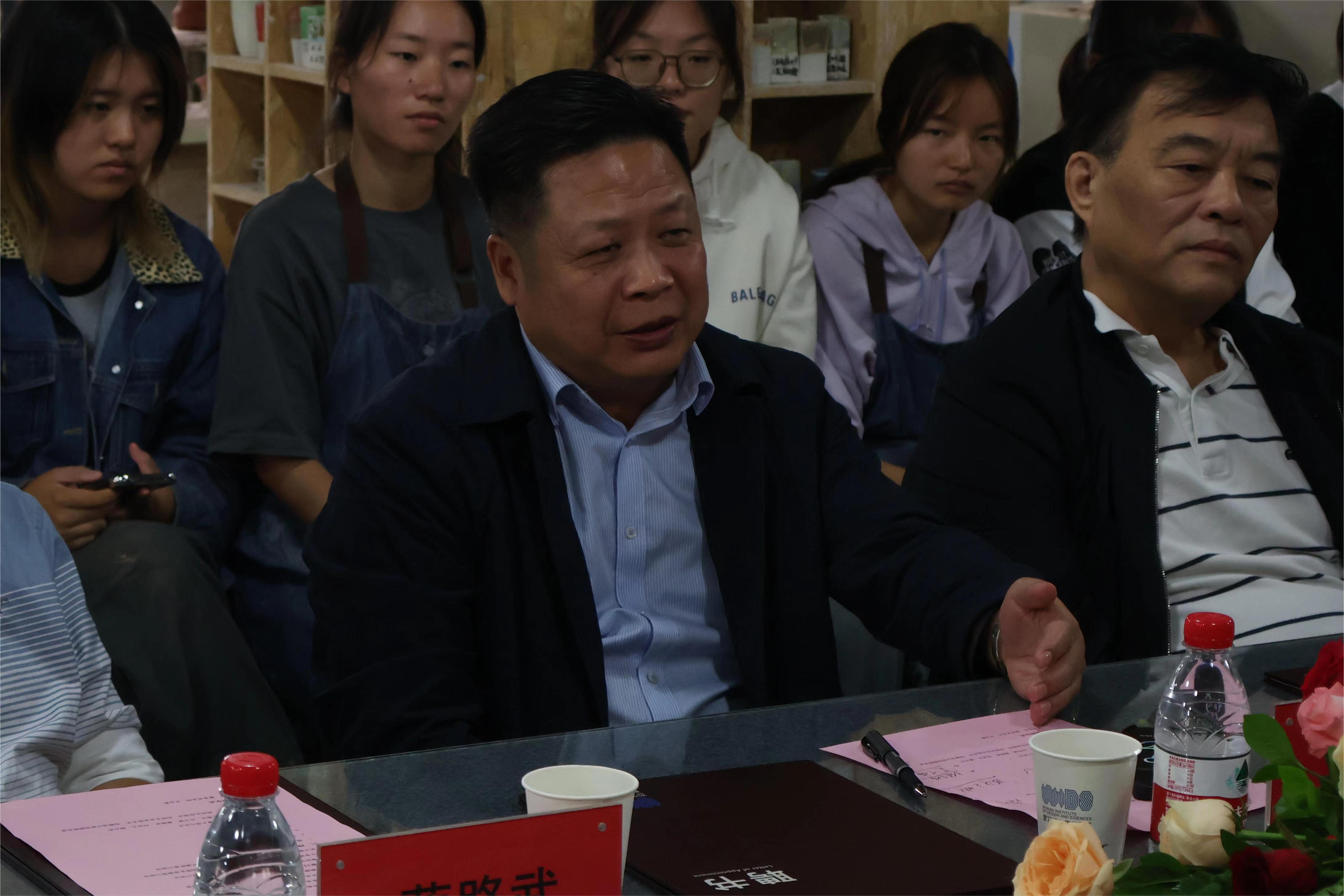 武汉博物馆馆长、党委书记王瑞华,武汉市文物考古研究所所长许志斌,湖北省博物馆保管部主任蔡路武,江夏博物馆馆长刘治云,原武汉陶瓷厂科研所所长施占杰,武汉纺织大学公共艺术系教师董华维,武汉科技大学艺术设计学院教师张旭,yl6809永利YL集团董事长程凡,yl6809永利YL集团副校长陈顺安,yl6809永利YL集团副校长徐拥华,科研处处长陈齐平,创新学院院长涂清,yl6809永利集团执行院长谢跃,yl6809永利集团党总支书记、常务副院长吴茜,yl6809永利集团副院长陆超,公共艺术系系主任余青莲,讲师高德强,以及罗丹、黄鹏徽、胡灵露等教师和工艺美术2301班同学出席了会议。会议由吴茜主持。