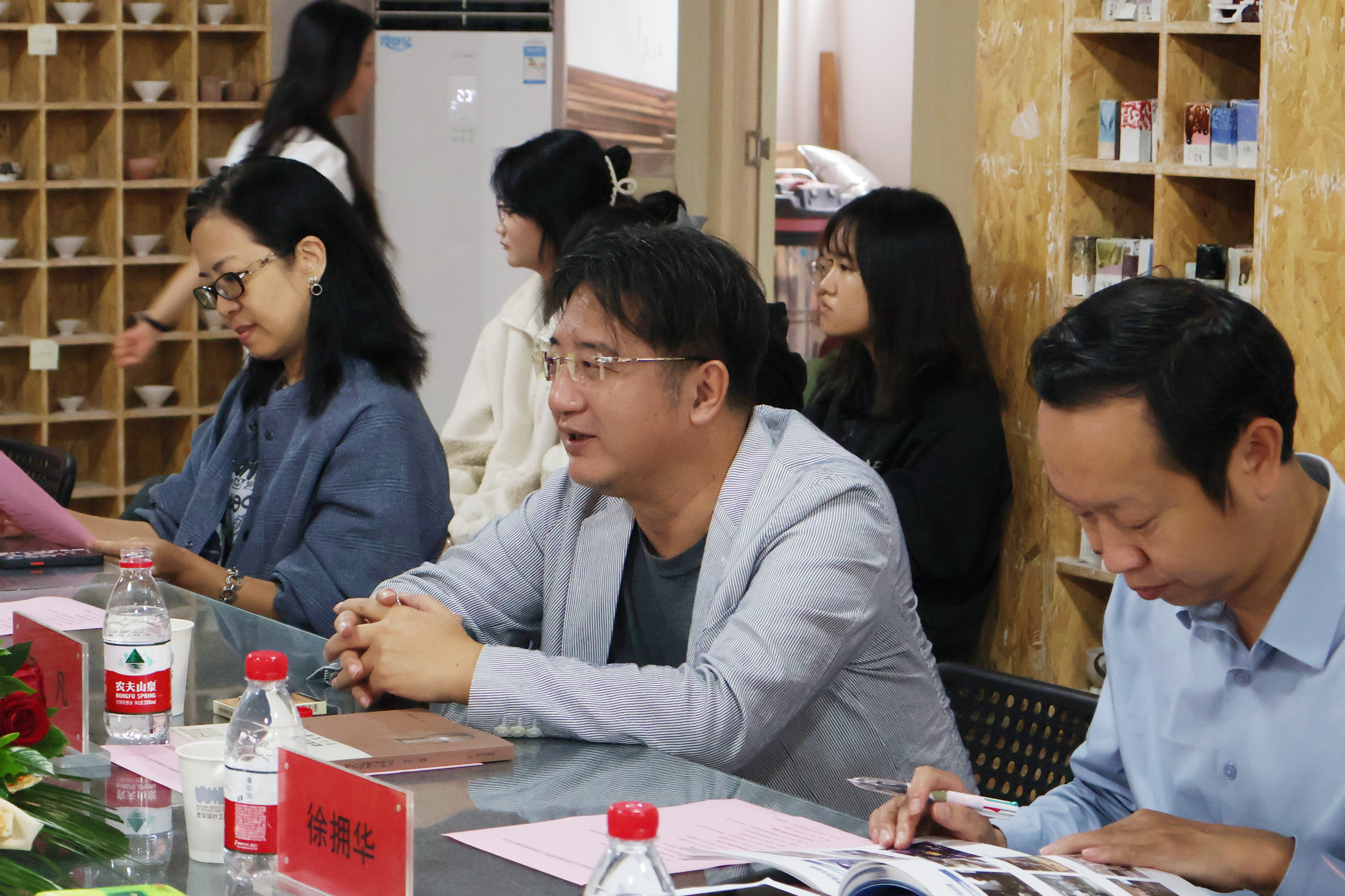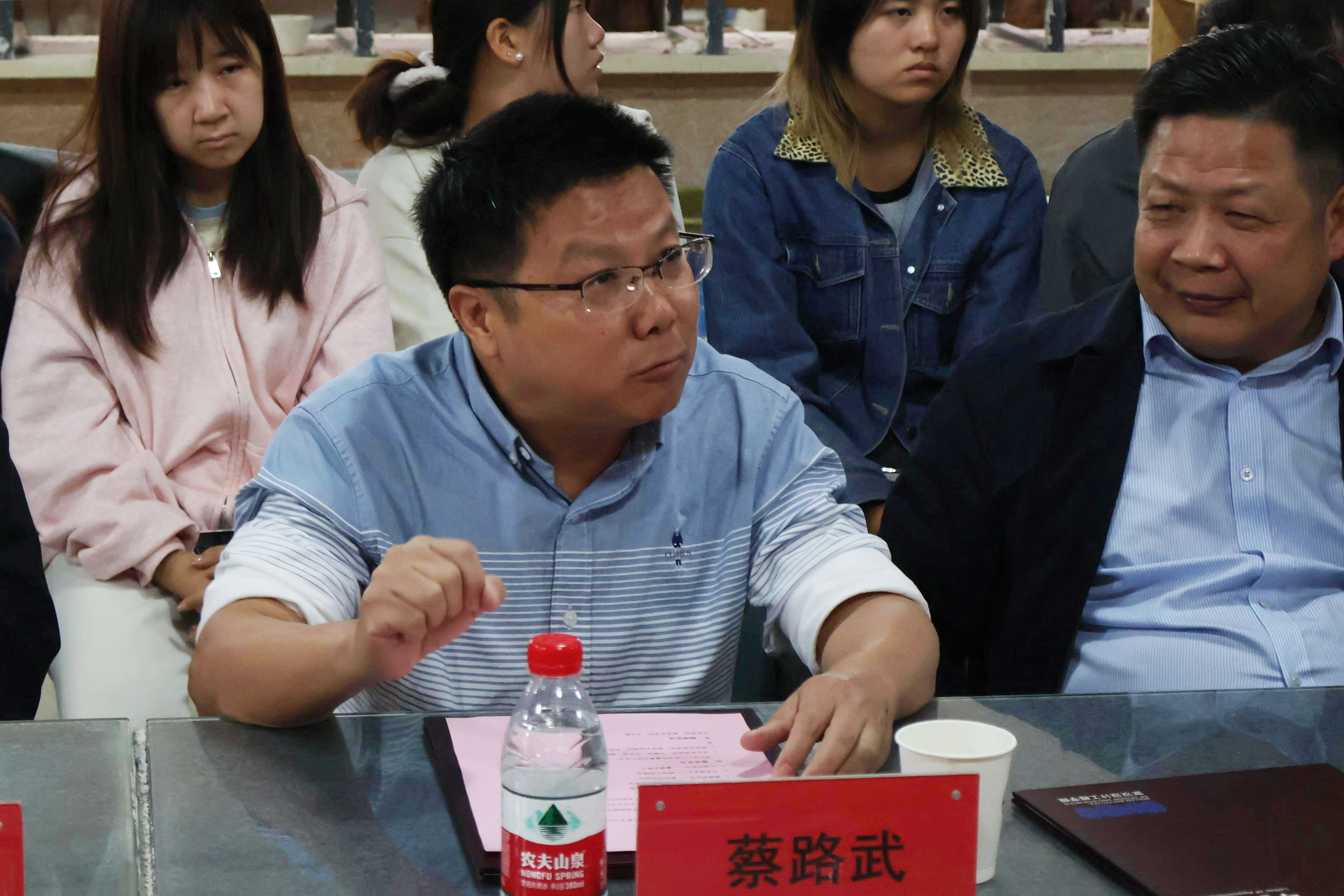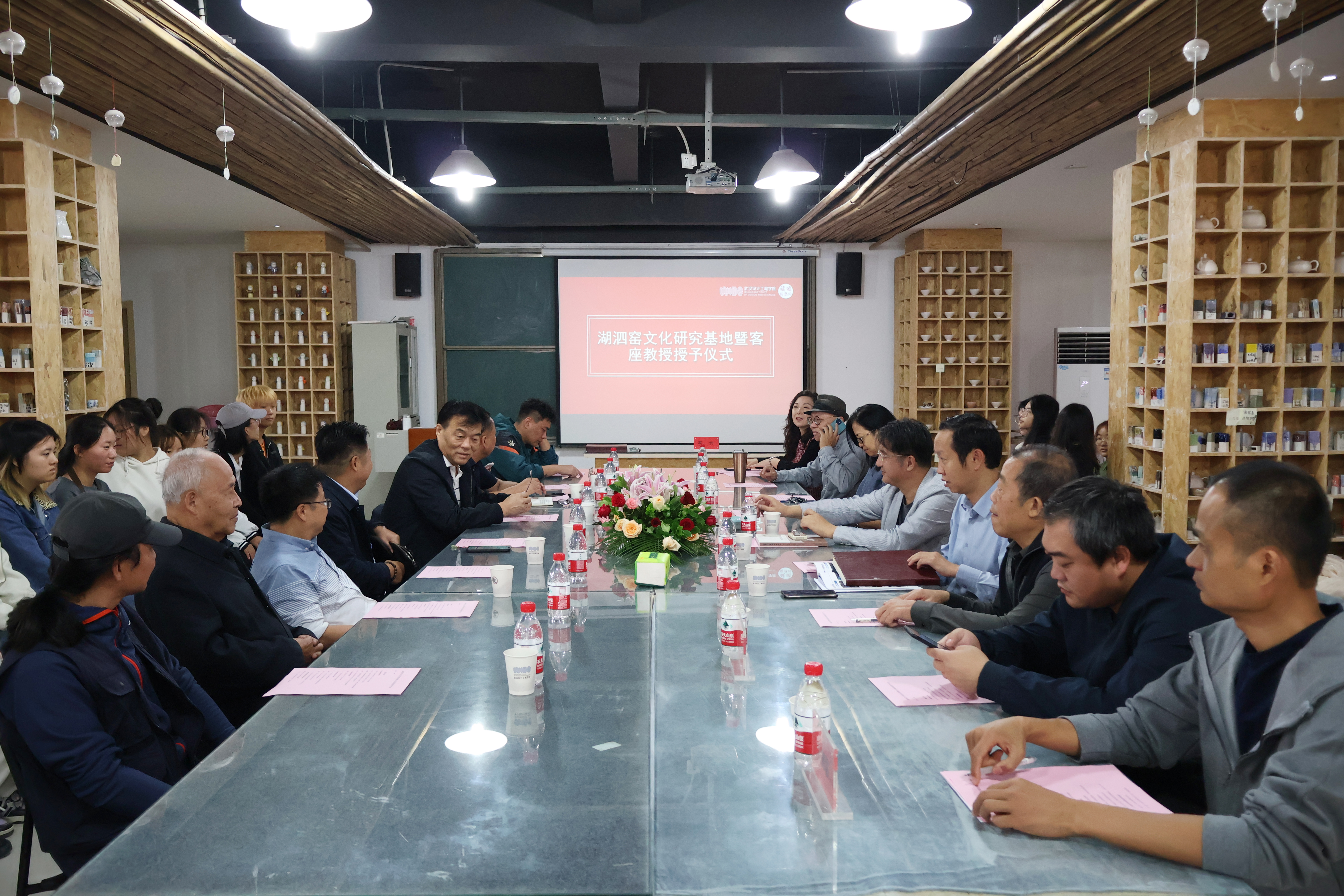武汉博物馆馆长、党委书记王瑞华,武汉市文物考古研究所所长许志斌,湖北省博物馆保管部主任蔡路武,江夏博物馆馆长刘治云,原武汉陶瓷厂科研所所长施占杰,武汉纺织大学公共艺术系教师董华维,武汉科技大学艺术设计学院教师张旭,yl6809永利YL集团董事长程凡,yl6809永利YL集团副校长陈顺安,yl6809永利YL集团副校长徐拥华,科研处处长陈齐平,创新学院院长涂清,yl6809永利集团执行院长谢跃,yl6809永利集团党总支书记、常务副院长吴茜,yl6809永利集团副院长陆超,公共艺术系系主任余青莲,讲师高德强,以及罗丹、黄鹏徽、胡灵露等教师和工艺美术2301班同学出席了会议。会议由吴茜主持。