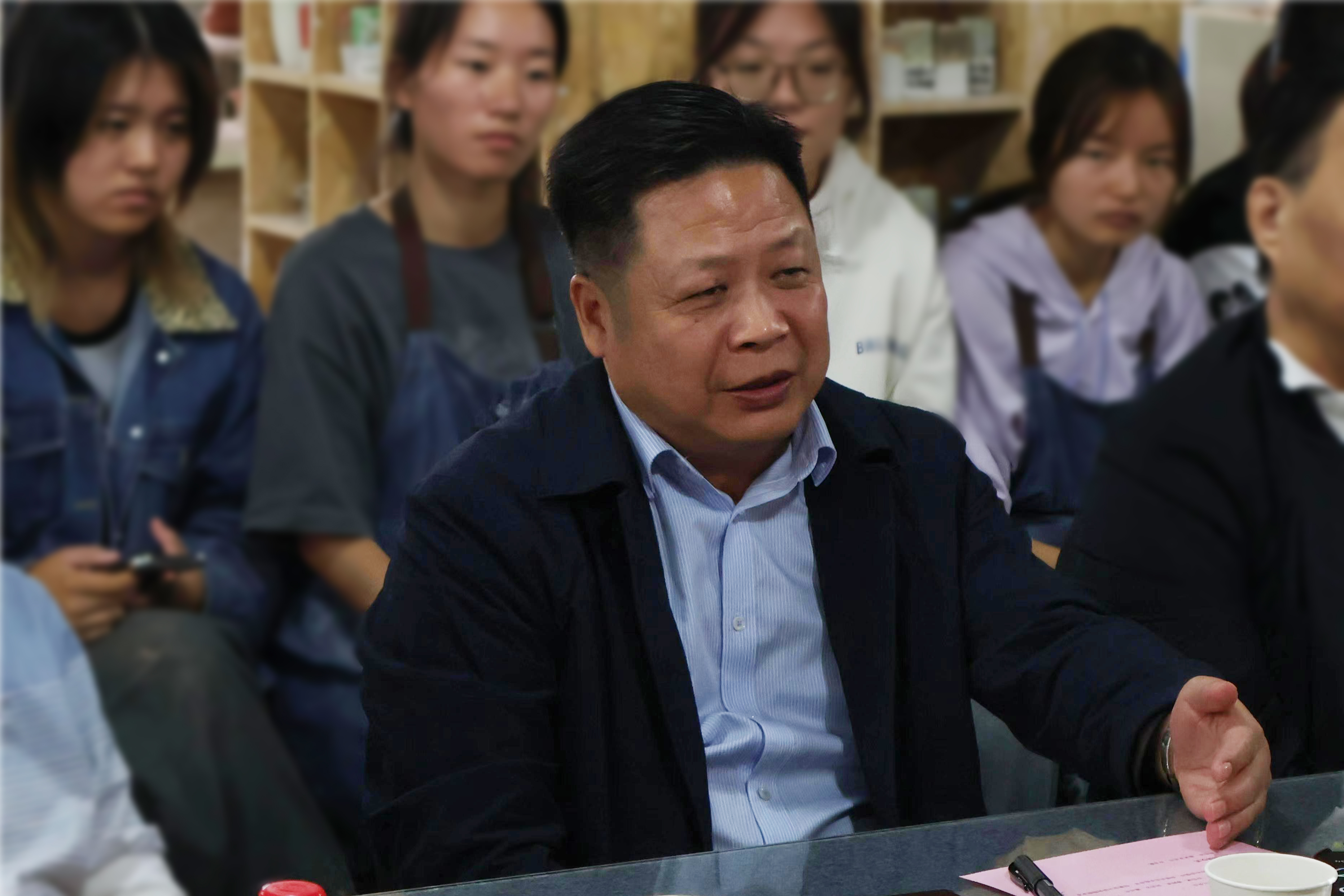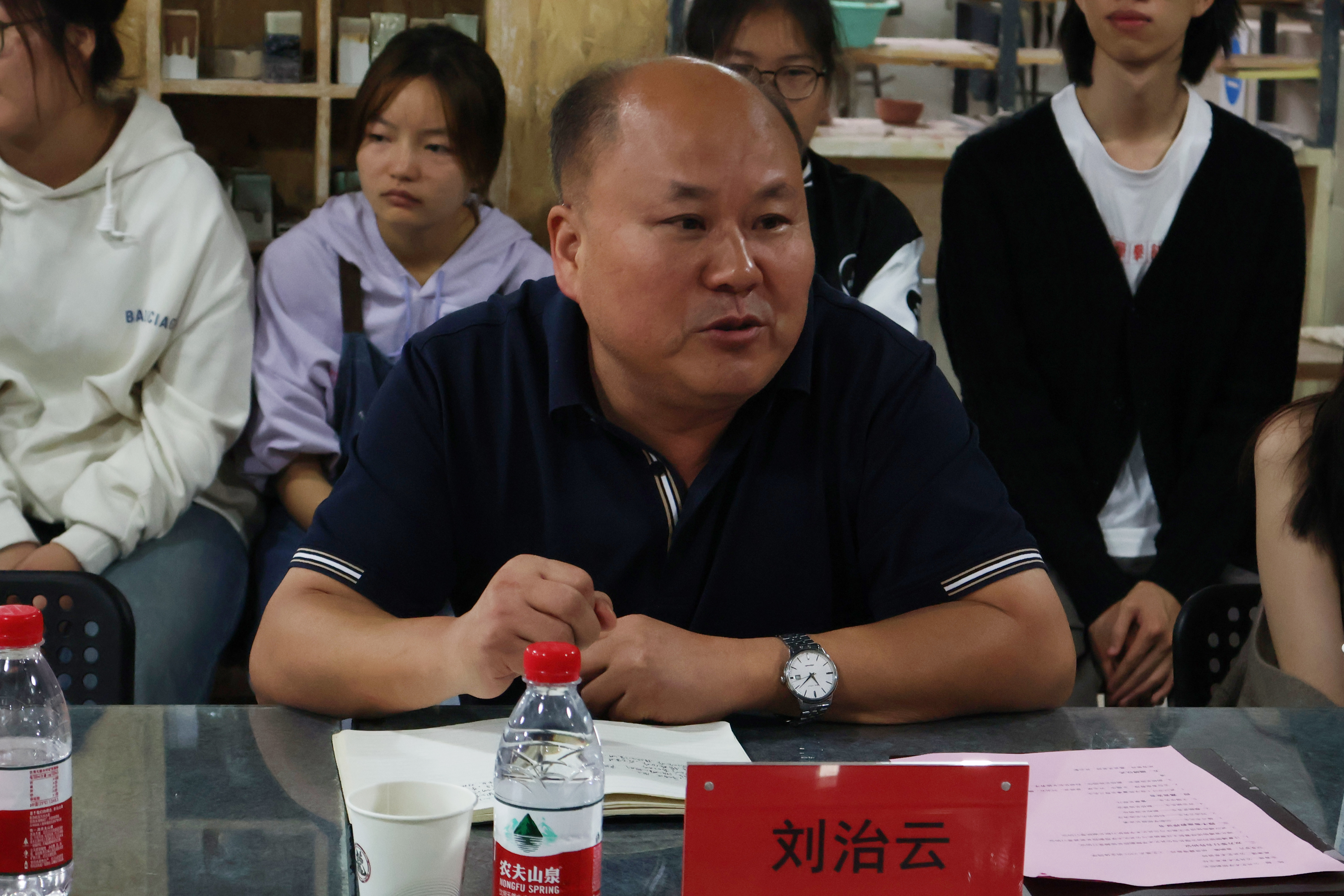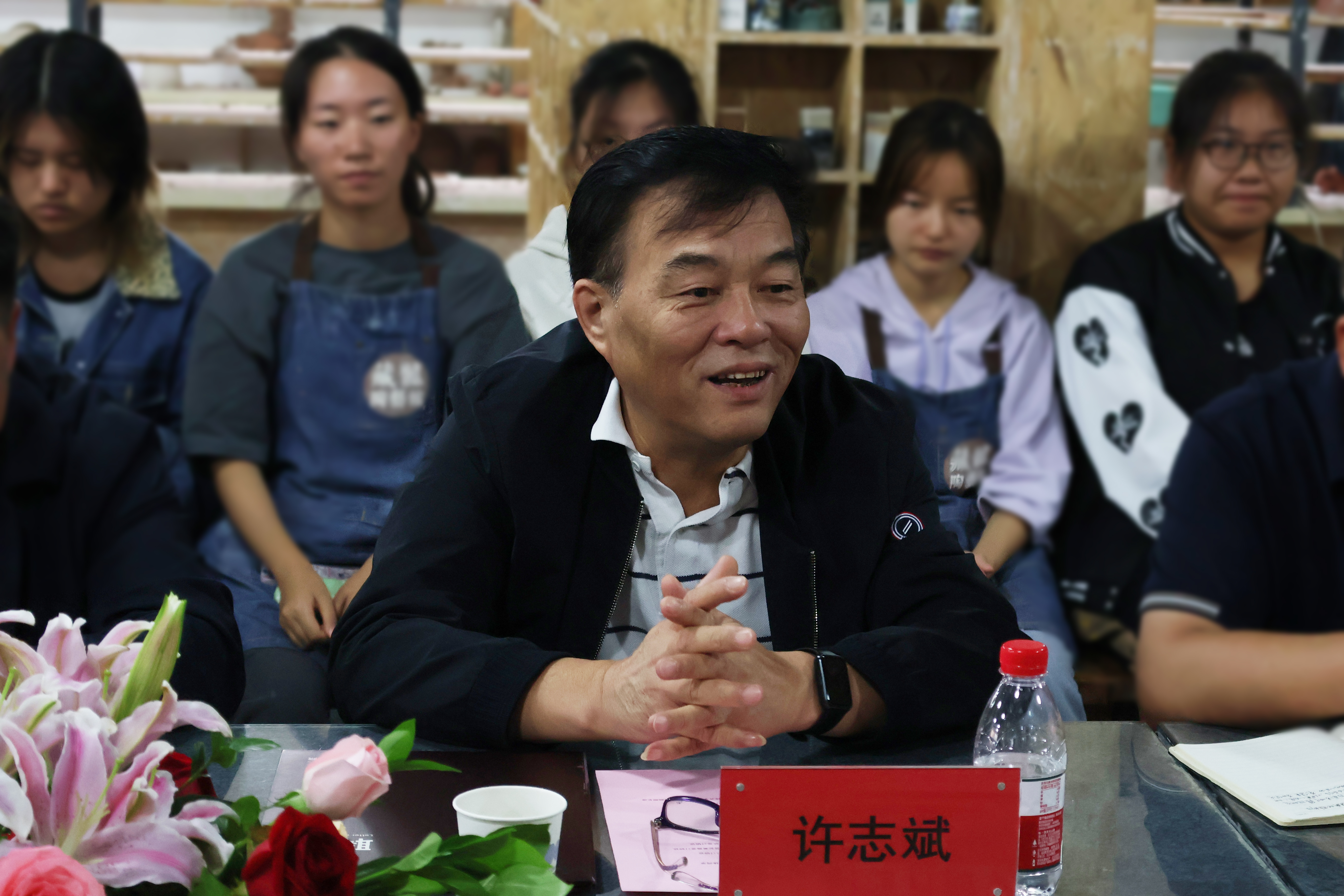 武汉博物馆馆长、党委书记王瑞华,武汉市文物考古研究所所长许志斌,湖北省博物馆保管部主任蔡路武,江夏博物馆馆长刘治云,原武汉陶瓷厂科研所所长施占杰,武汉纺织大学公共艺术系教师董华维,武汉科技大学艺术设计学院教师张旭,yl6809永利YL集团董事长程凡,yl6809永利YL集团副校长陈顺安,yl6809永利YL集团副校长徐拥华,科研处处长陈齐平,创新学院院长涂清,yl6809永利集团执行院长谢跃,yl6809永利集团党总支书记、常务副院长吴茜,yl6809永利集团副院长陆超,公共艺术系系主任余青莲,讲师高德强,以及罗丹、黄鹏徽、胡灵露等教师和工艺美术2301班同学出席了会议。会议由吴茜主持。