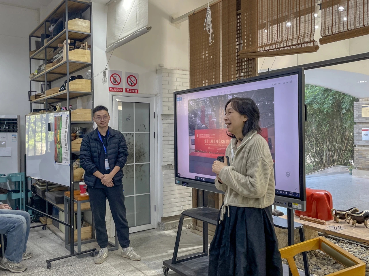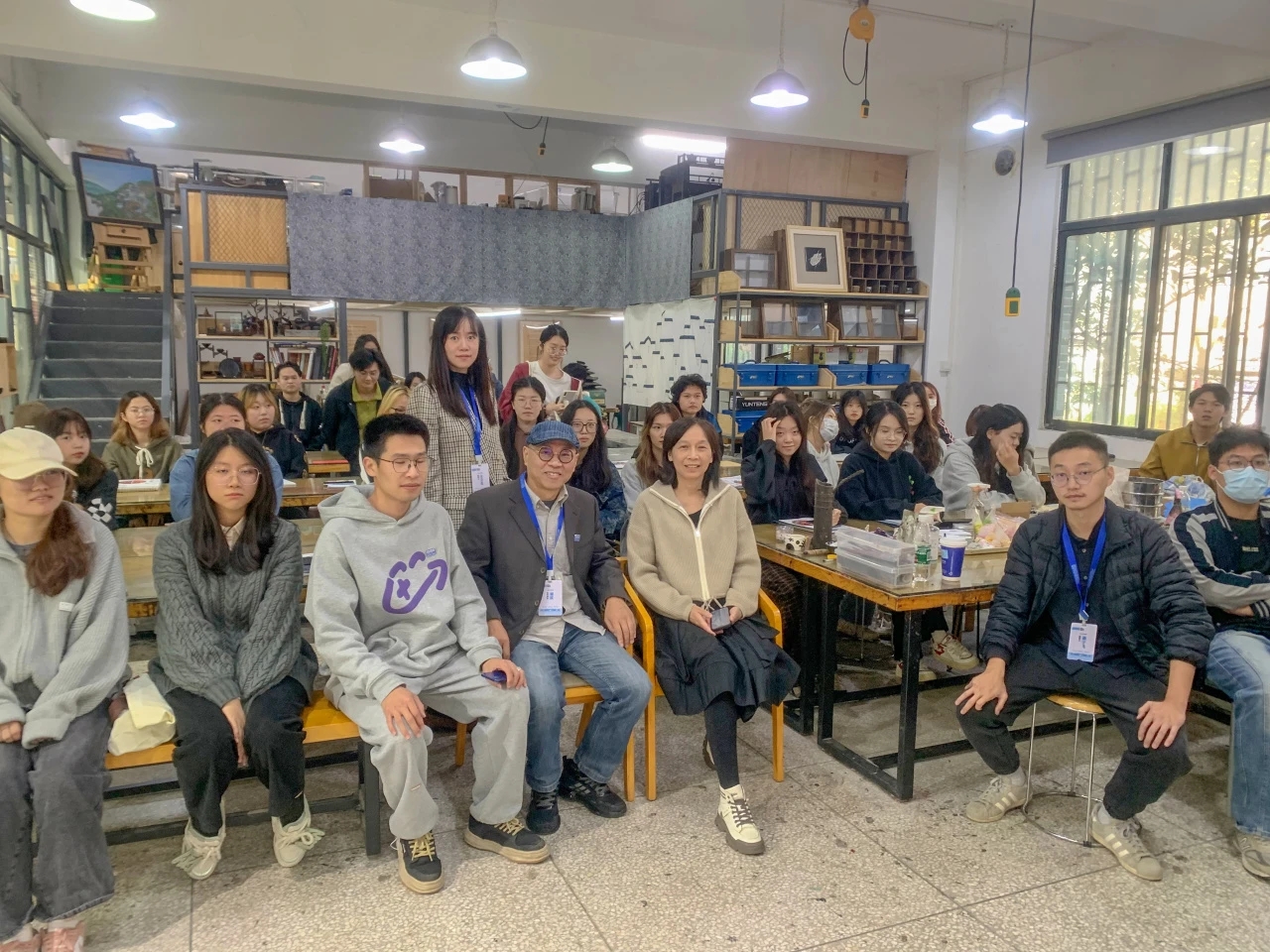 2023年11月7日上午10点,湖北省美术院一级美术师,中国著名漆画艺术家未明在yl6809永利集团大漆艺术实验室对我校yl6809永利集团工艺美术专业学生开展了主题为“中国漆画创作现状”的讲座。为我们分享其对中国当代漆画创作现状的思考以及个人艺术创作历程和创作经验。参加此次讲座的有yl6809永利集团执行院长、藏龙陶艺馆馆长谢跃、公共艺术系主任余青莲、工艺美术教研室主任燕宇飞及yl6809永利集团工艺美术专业诸多师生。