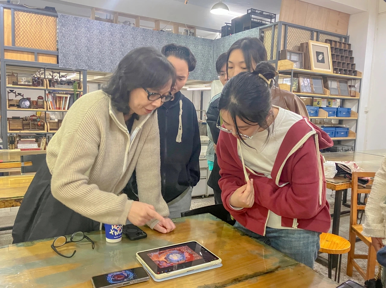 讲座结束后,未明老师与工艺美术专业2020级毕业生展开深入交流,同学们积极主动,将自己的毕业创作方案拿出来与未明老师展开热烈、深入的讨论,未明老师对同学们毕业设计方案中存在的困难和问题一一详细解答和指导,现场形成良好的交流氛围。
