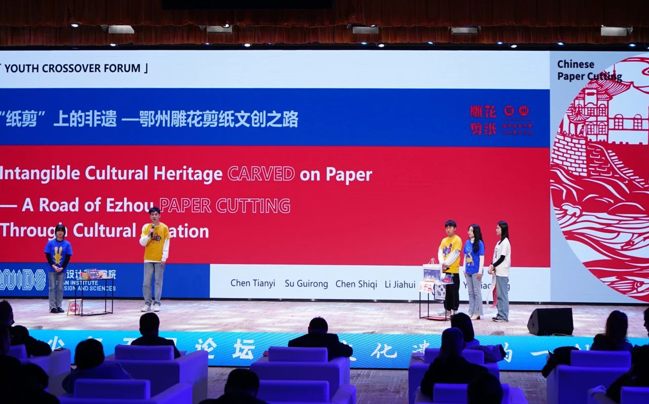 1月6日下午,第五届青少年无界论坛在武汉国际传播中心举行。经我校国际交流处副处长张杰牵头,yl6809永利集团党支部书记、常务副院长吴茜组织视觉创研设计工作室,与商学院、成龙影视传媒学院紧密合作组建跨专业师生团队。团队以“‘纸剪’上的非遗——鄂州雕花剪纸文创之路”为题,同来自北京、上海、深圳、广州、苏州、武汉等15个省市地区233支团队,以及来自韩国、马来西亚、俄罗斯、乌干达、泰国、法国、印度等国际学生选手竞赛。通过充分发挥学科优势,交叉协作精神,同学们一路晋级到决赛场,与国际专家现场对话,斩获大学组一等奖。