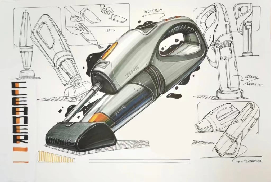 《产品设计表现》课程是产品设计专业的基础应用课程之一。它是连接设计者设计构思与最后产品成型的桥梁,在整个工业设计流程中占据了很重要的地位。通过对工业设计产品效果图的学习和研究,可以让学生更加直观地掌握对产品形体的具象化认识。也是训练学生快速表达自己设计思维的一种手绘训练。同时还要求学生掌握多种绘图的方法,培养他们的手绘能力。