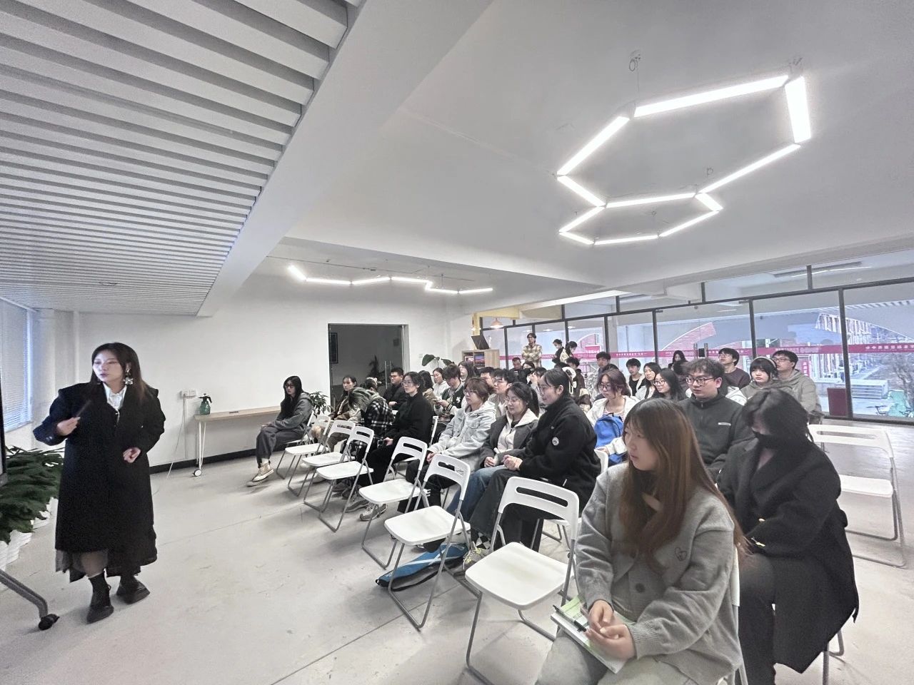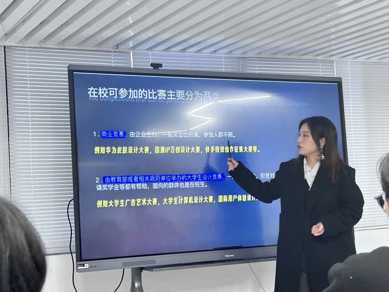 同时为学生分享了设计类赛事的典型案例,并鼓励参加各类赛事,强调学生只有通过参加比赛,挥主观能动性去学习,才能在专业上有突破性的提升。