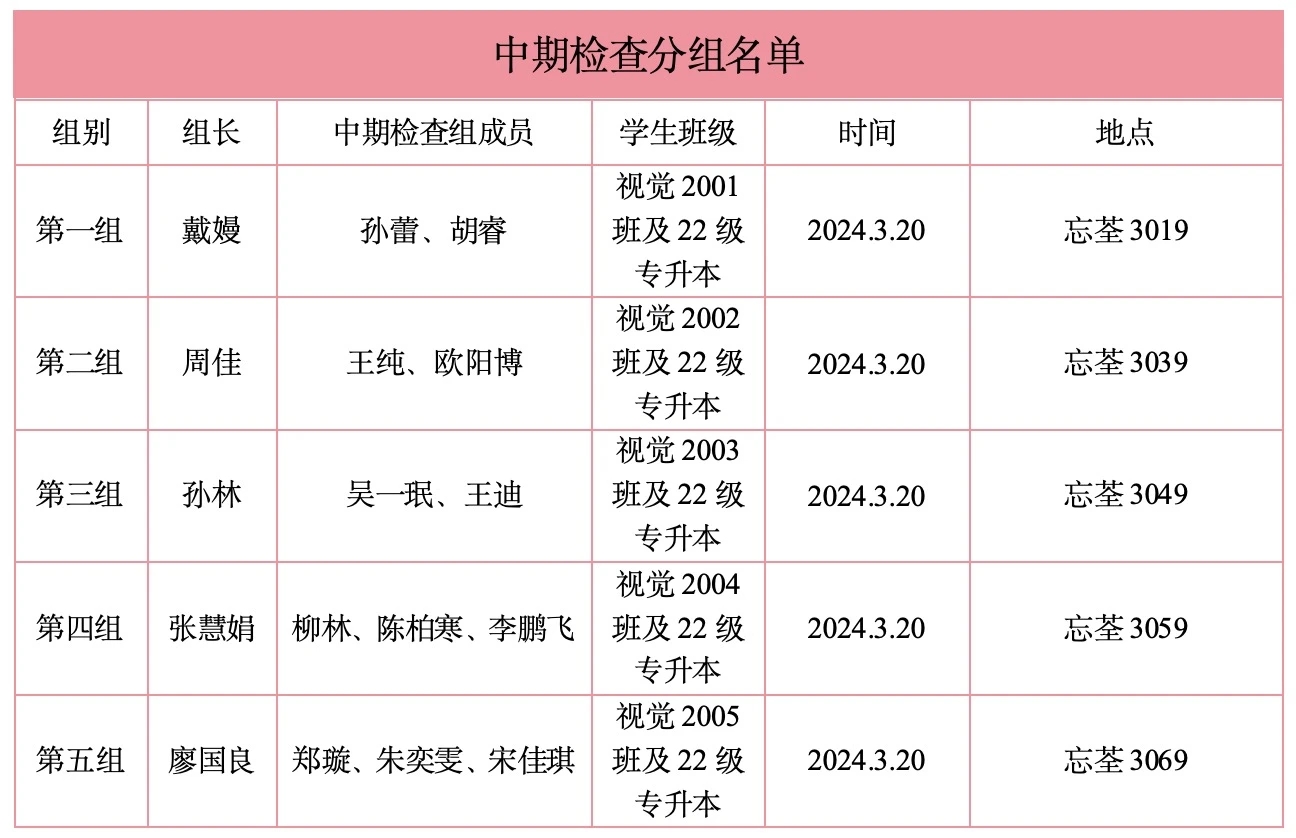 经过此次中期检查,毕业生通过对于自己的毕业设计进行了梳理与汇总,帮助毕业指导老师了解各组学生毕业设计的整体进展情况。通过师生之间的面对面交流进一步优化毕业生毕业设计的方案也更加清晰和明确了在接下来的毕业设计中需要注意和改进的方向。