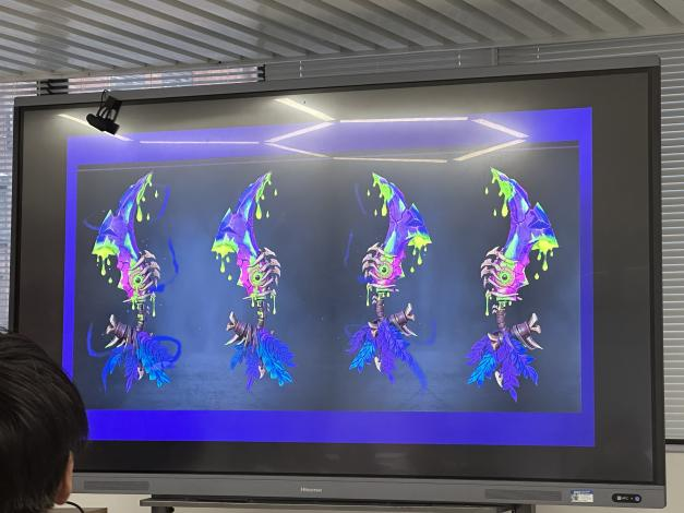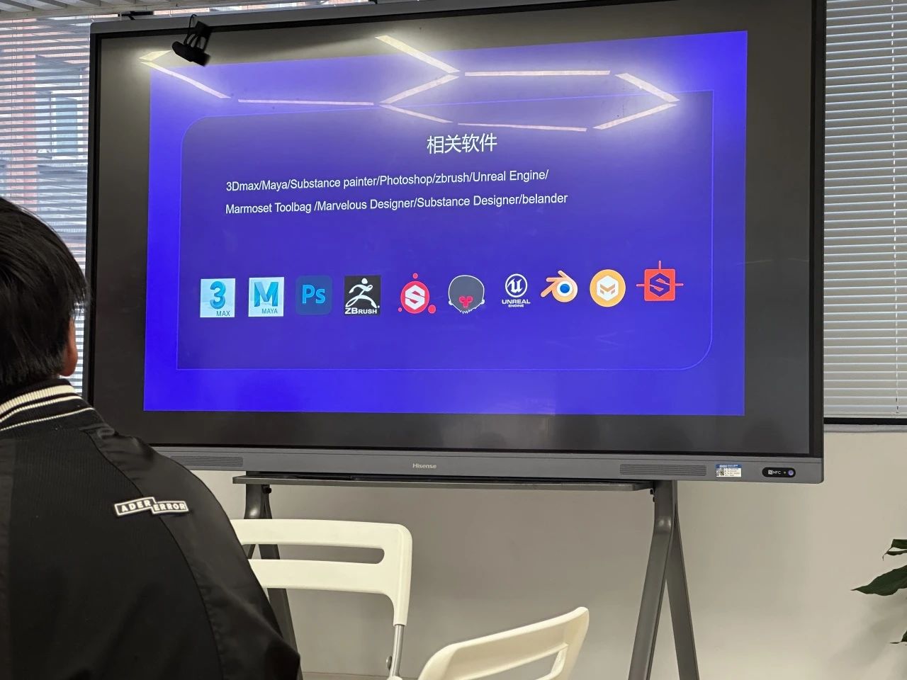 首先,童老师分享行业中的优秀作品,由此引出行业使用的各类软件及其应用,激发学生对游戏设计的兴趣。
