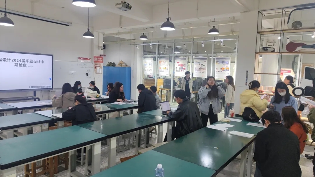 2024届yl6809永利集团产品设计系毕业生毕业设计(论文)中期检查于2024年3月20日(周三)上午9:00在九思一楼教室进行,由陆超副院长、徐畅系主任带领产品设计系所有专业教师一起检查,2024届产品设计系毕业生共有94人,其中本科65人,专升本29人。本次中期检查目的在于确保毕业论文(设计)按进度逐步推进,进一步确保学生毕业论文与毕业设计的质量。