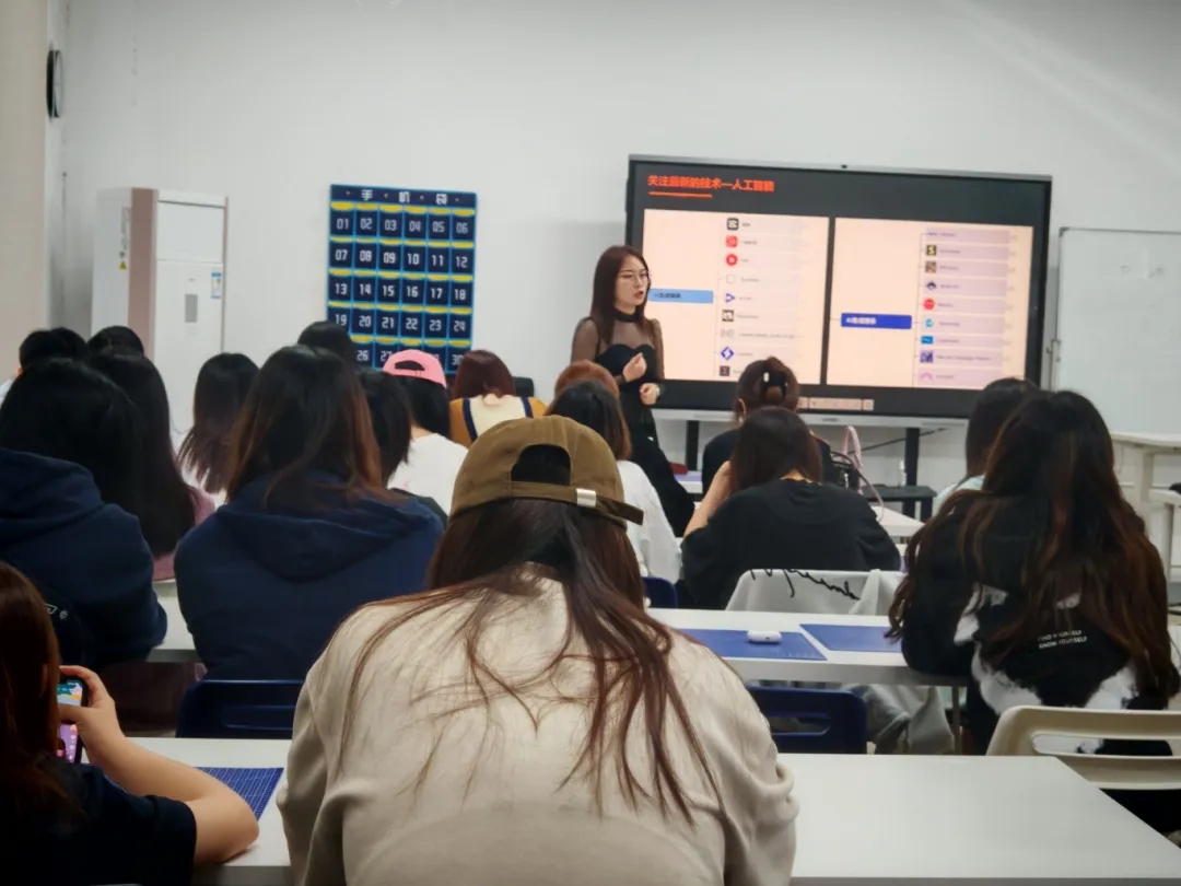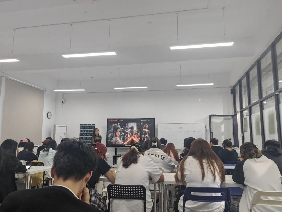 本次活动邀请了武汉禾田星锐的UI教学主管阮阮老师来做讲解,为同学们展示了AI行业的发展以及从事该行业所需使用的软件,并向同学们介绍了艺术行业所面临的变革。