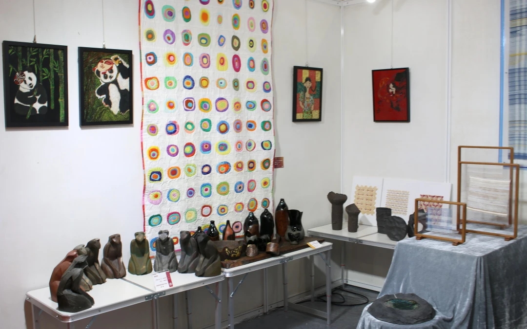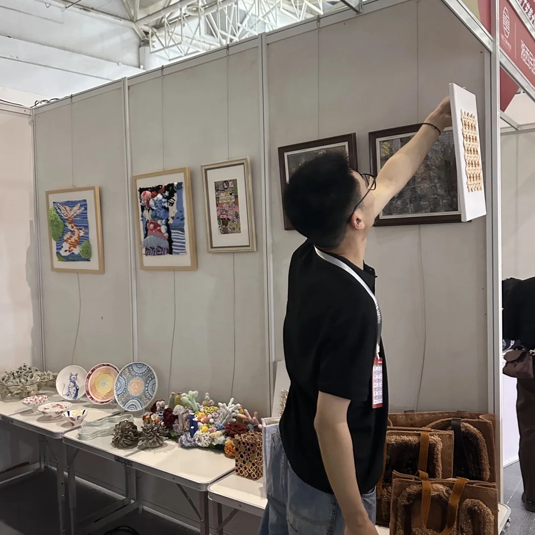 此次共选出师生作品50余件(组)参展,其中包含陶艺、漆艺、纤维艺术、马赛克镶嵌、金属工艺等作品,这些作品充分展现了我校工艺美术专业扎实的功底,也体现了传统与现代结合的创新尝试。丰富多样的作品形式和种类也在展会期间吸引大批观众驻足观看了解,并获得业界同行的高度评价。