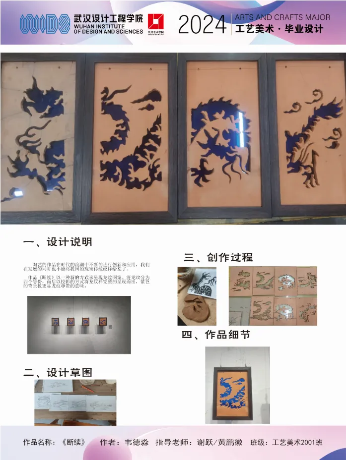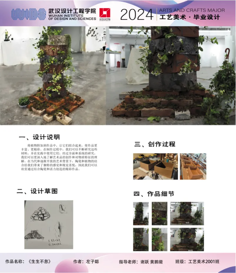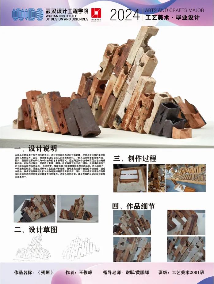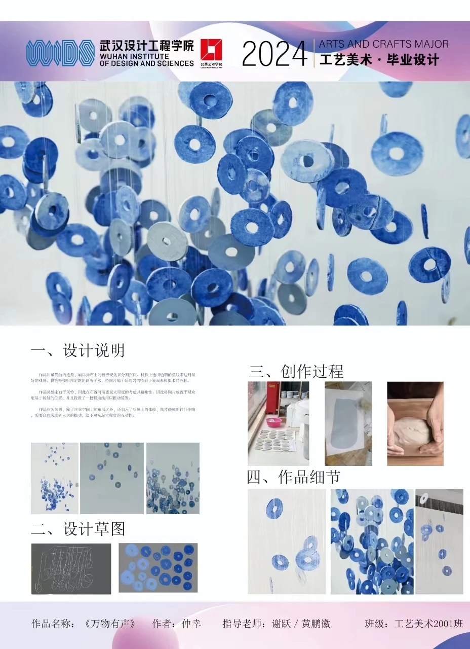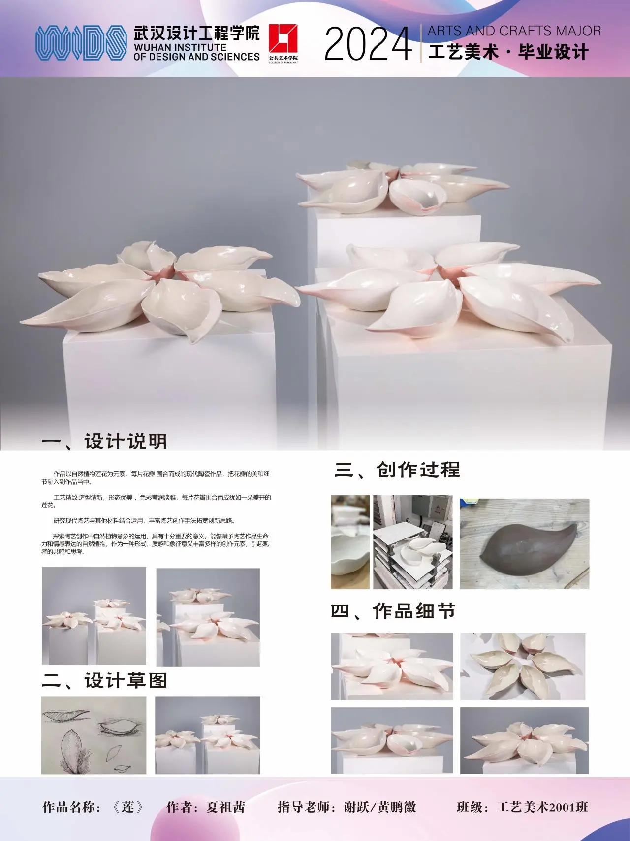 在这场工艺美术专业毕业展上,每一件作品都承载着学生们对艺术的热爱和对技艺的探索。他们通过细腻的手工技艺和深刻的艺术表达,展示了他们独特的视角和创造力。这些作品不仅是工与艺的结合,更是对社会与文化的思考和反思。从陶艺到纤维,从综合材料镶嵌到漆艺,每一件展品背后都蕴含着学生们对工艺美术不懈追求的汗水与梦想。见证了这些同学们四年的成长与进步,以及他们对未来的憧憬和探索。在这个充满灵感与创造力的展览中,工艺美术将以全新的方式展现出其独特的魅力和无限的可能性。