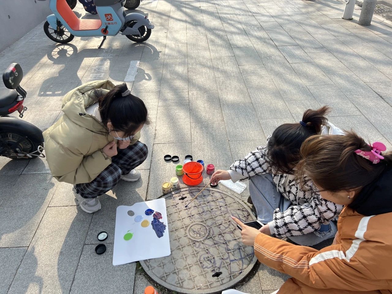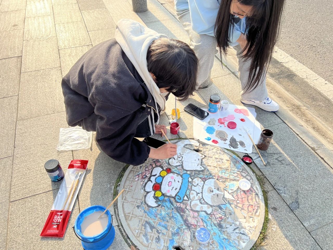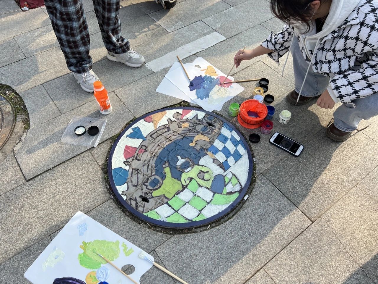 校园井盖涂鸦大赛中,选手们或独自挥洒创意,或团队合作精心构思,他们用画笔和颜料在井盖上描绘出各式各样的图案,从传统文化符号到现代流行元素,从抽象艺术到现实主义,无不展现出校园生活的多样性和学生们的创造力。