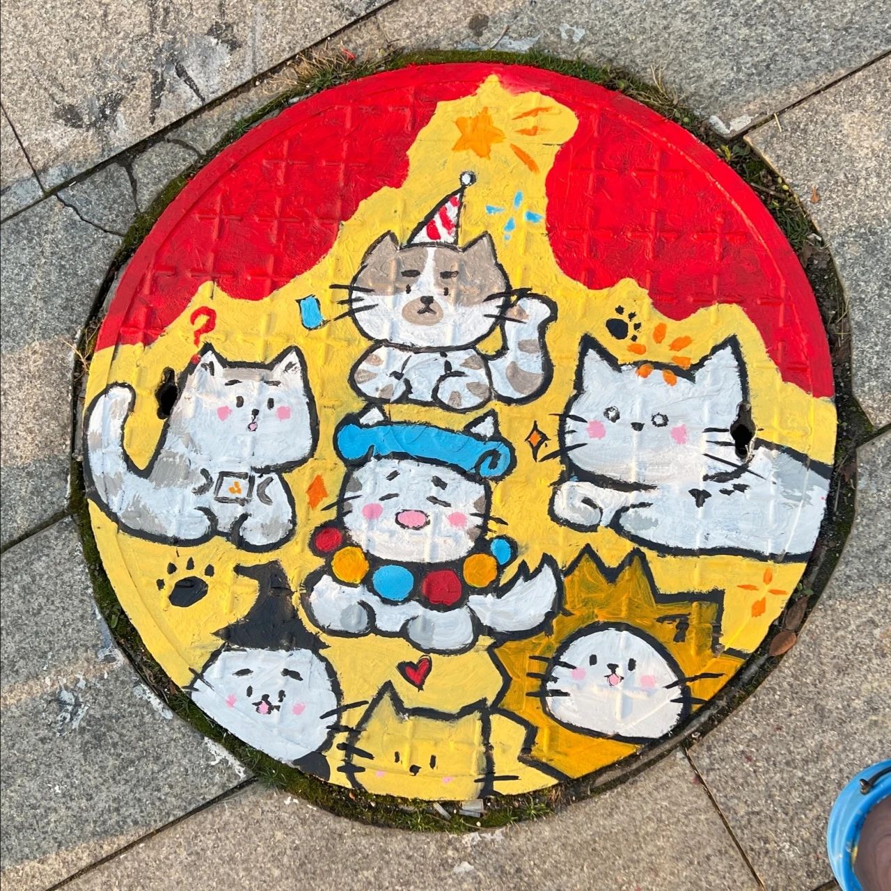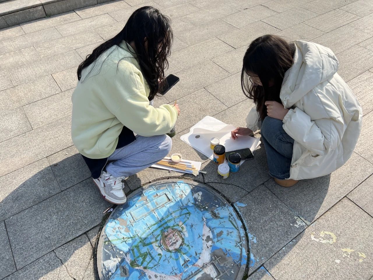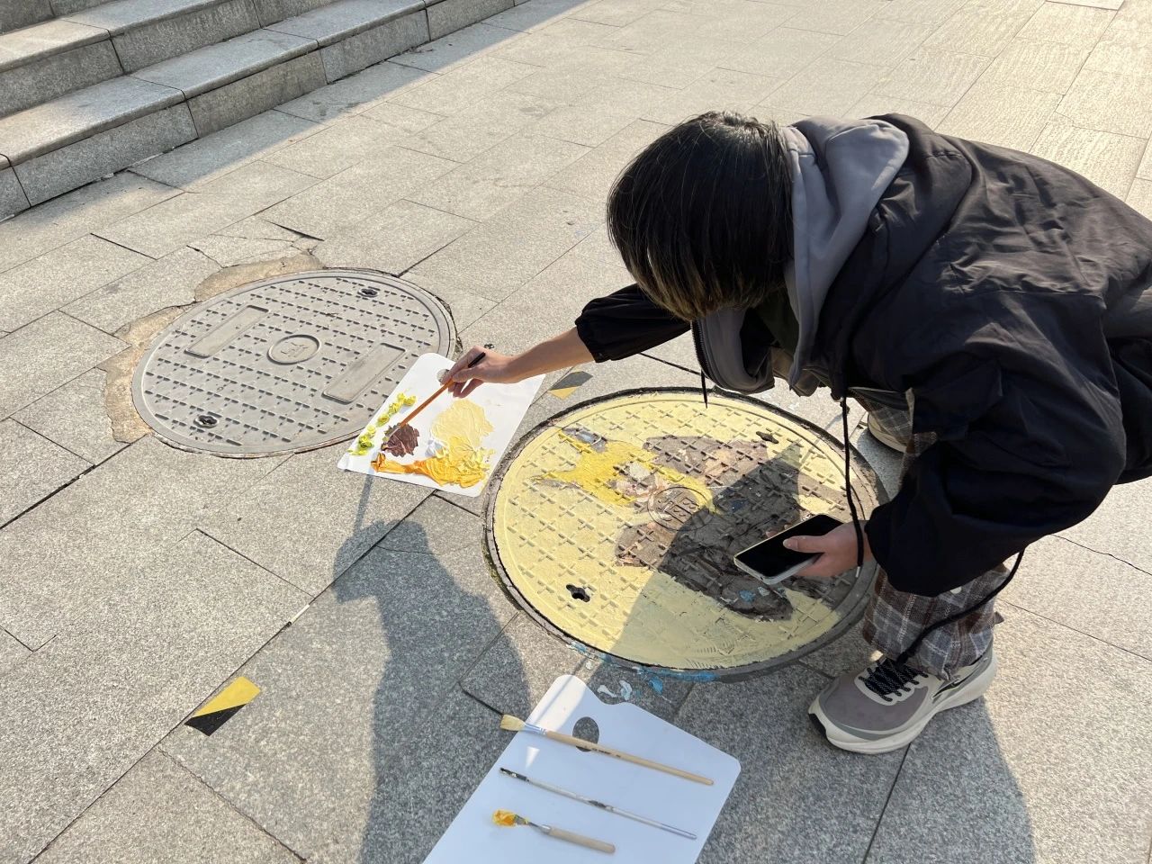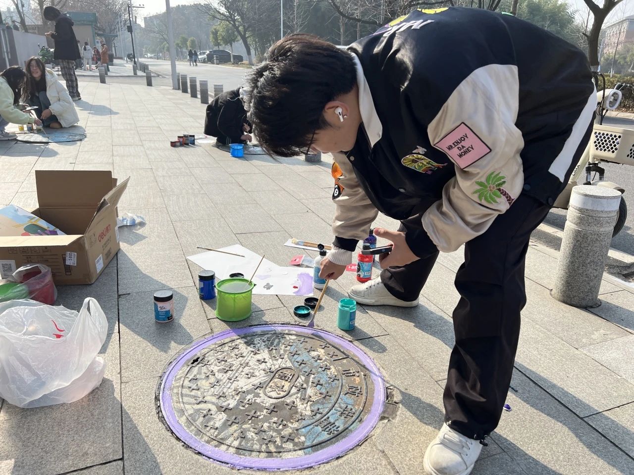 校园井盖涂鸦大赛中,选手们或独自挥洒创意,或团队合作精心构思,他们用画笔和颜料在井盖上描绘出各式各样的图案,从传统文化符号到现代流行元素,从抽象艺术到现实主义,无不展现出校园生活的多样性和学生们的创造力。