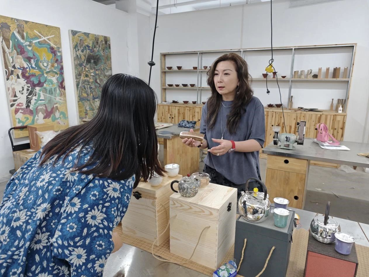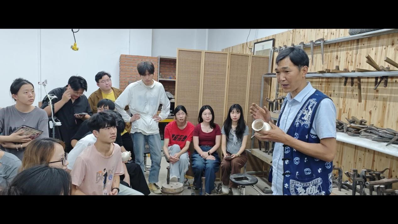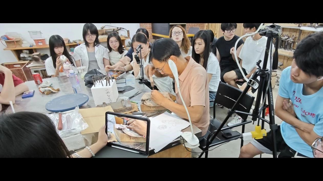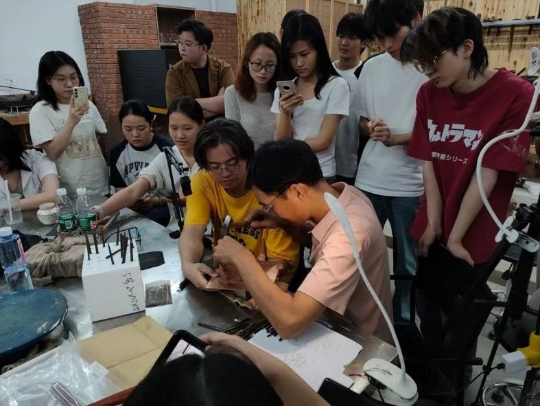 与工艺美术专业教师陈翔宇互动示范金属浮雕技艺