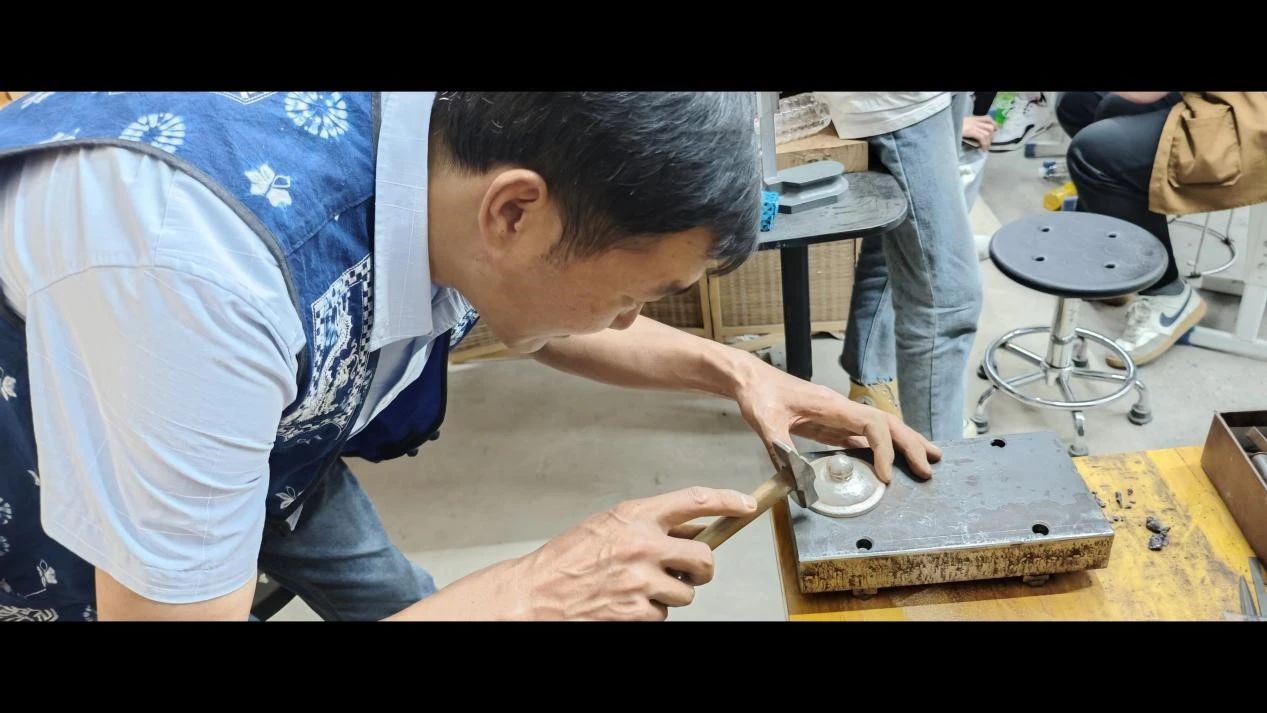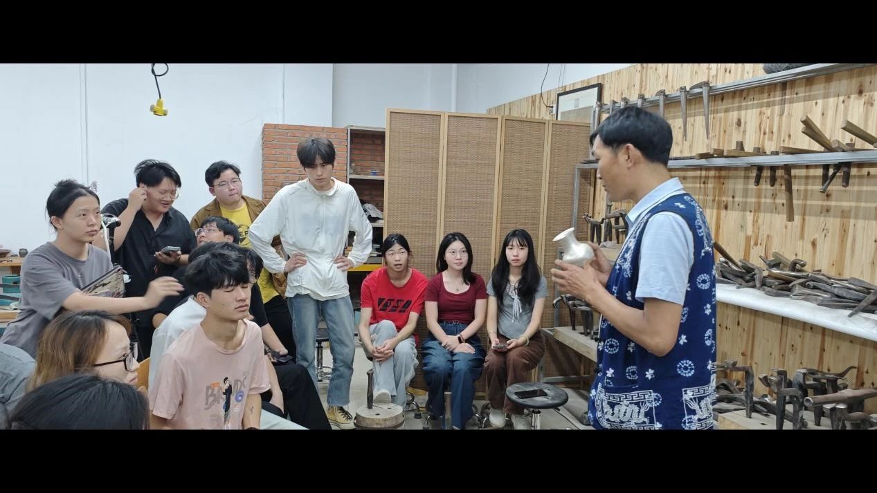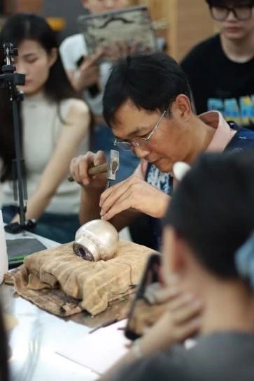 2024年9月23日-9月27日yl6809永利集团工艺美术专业课程《立体造型语言》有幸邀请到云南省省级非遗项目银饰锻制技艺代表性传承人、云南省省级工艺美术大师——寸光伟先生为工艺美术21级学生传授器皿锻造、金属浮雕、平面装饰錾花工艺。课程中寸老师非常认真地为大家进行了三项工艺各个环节的示范讲解,从造型设计、选料定尺寸、初级成型、工具配合、工艺手法、造型要领、金属浮雕造型工艺拆解、装饰图案设计、少数民族与地域文化艺术发展等,让同学们有了一次沉浸式与非遗文化、传统手工艺、地域文化艺术接触的机会,无论是在专业技能知识上还是非遗传承,以及中国优秀的传统文化的接触都是具有重要的意义与影响。